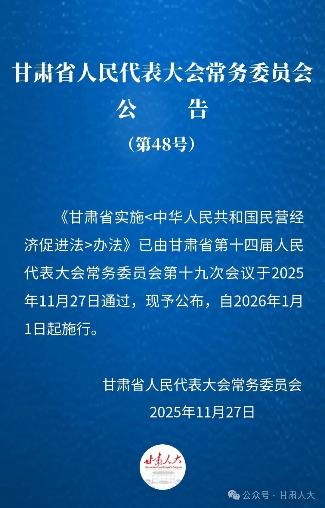 (2025年11月27日甘肃省第十四届人民代表大会常务委员会第十九次会议通过)