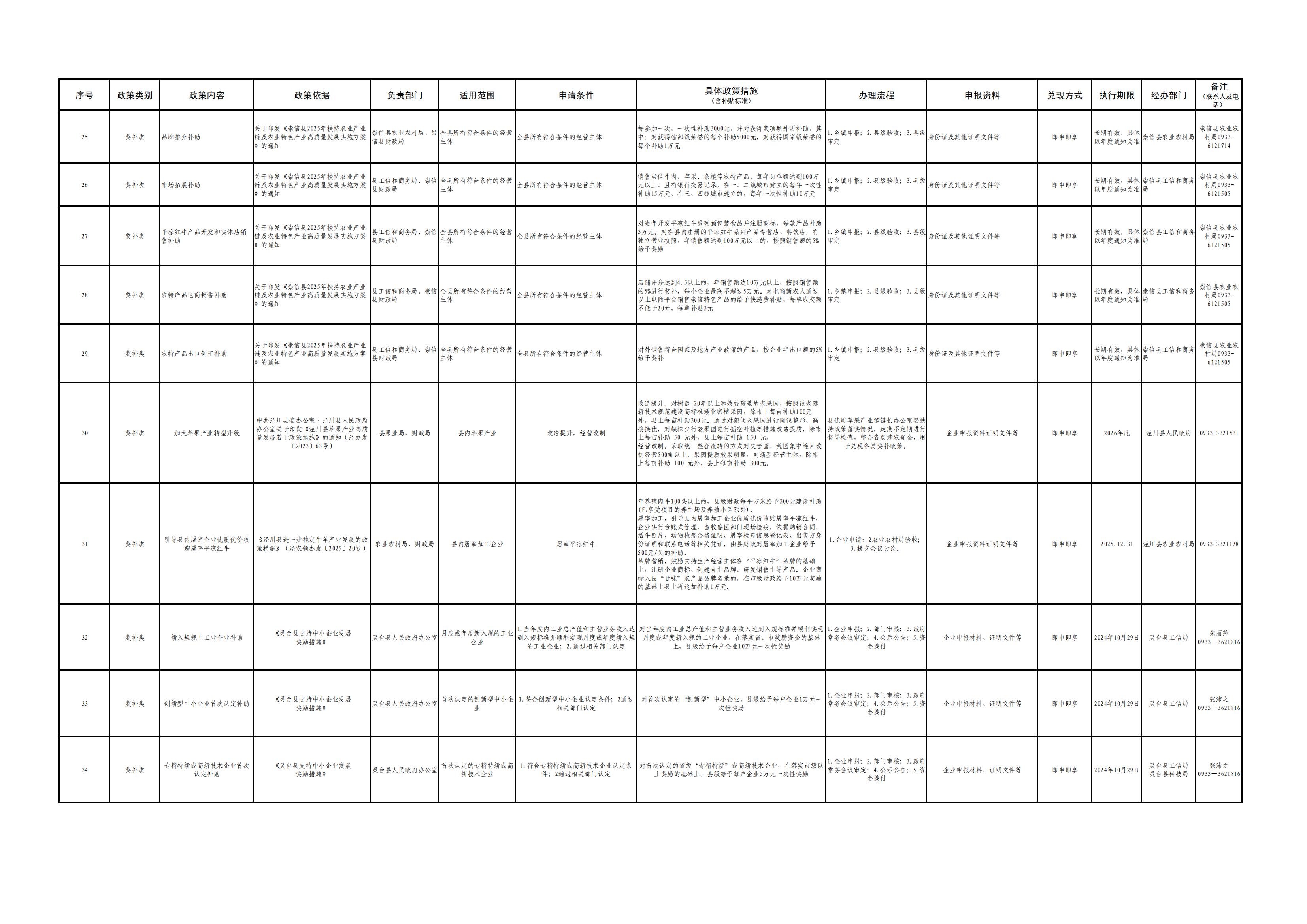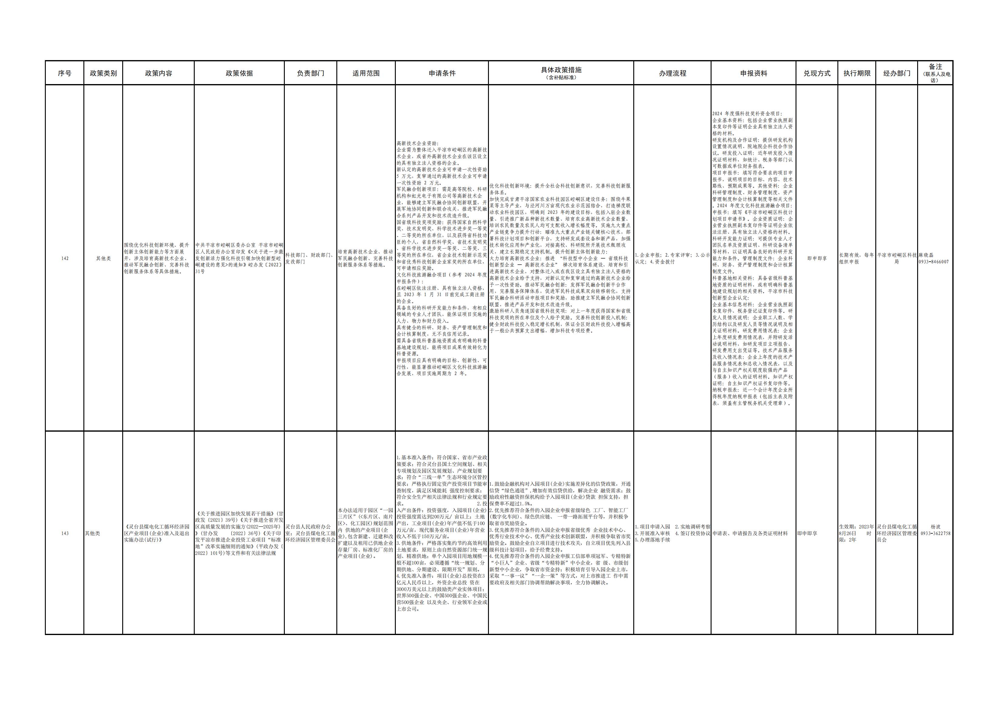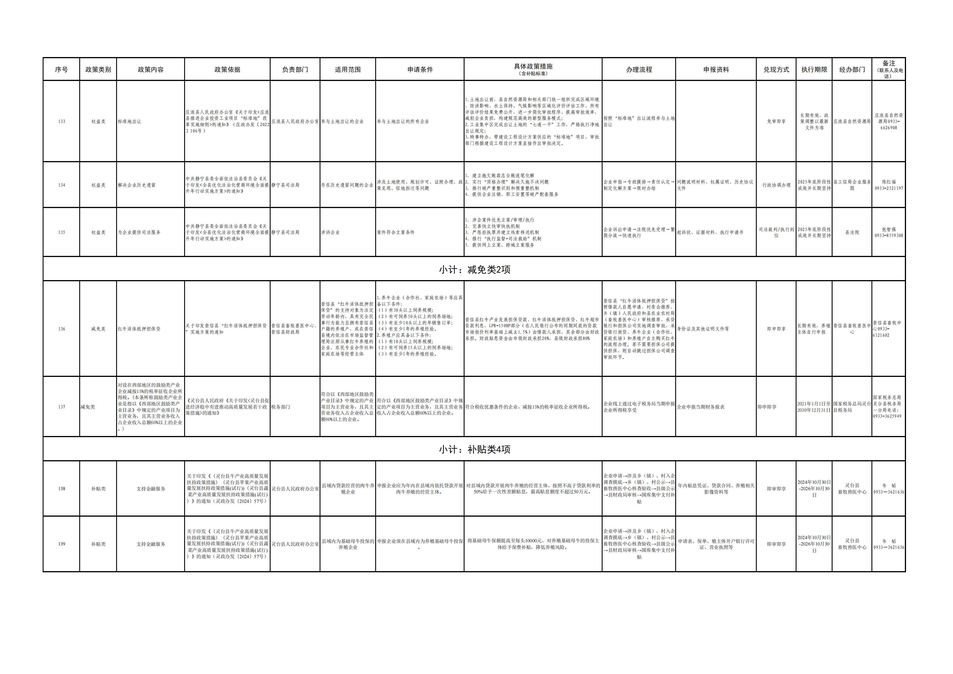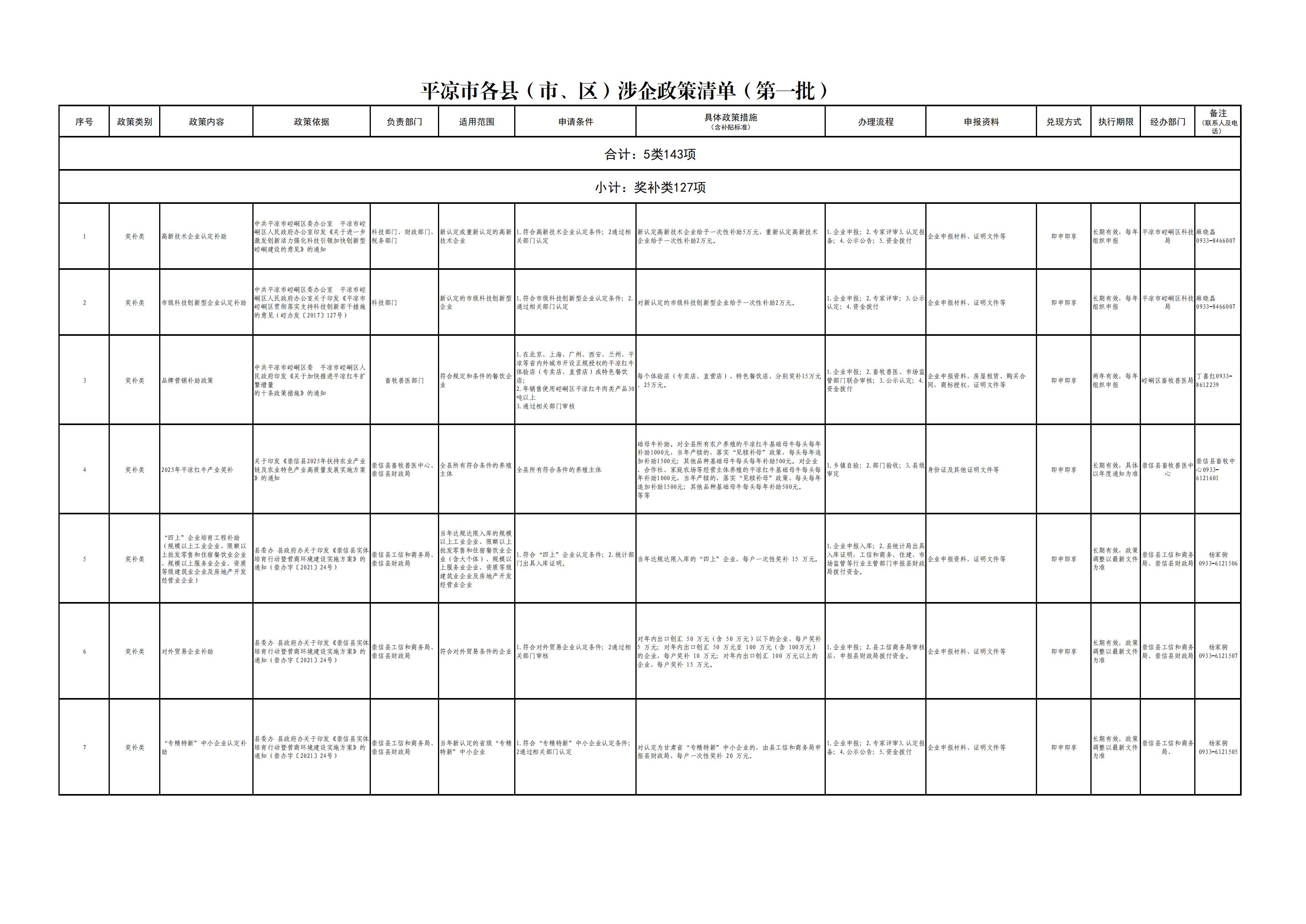 平凉市各县(市、区)涉企政策清单(第一批)
