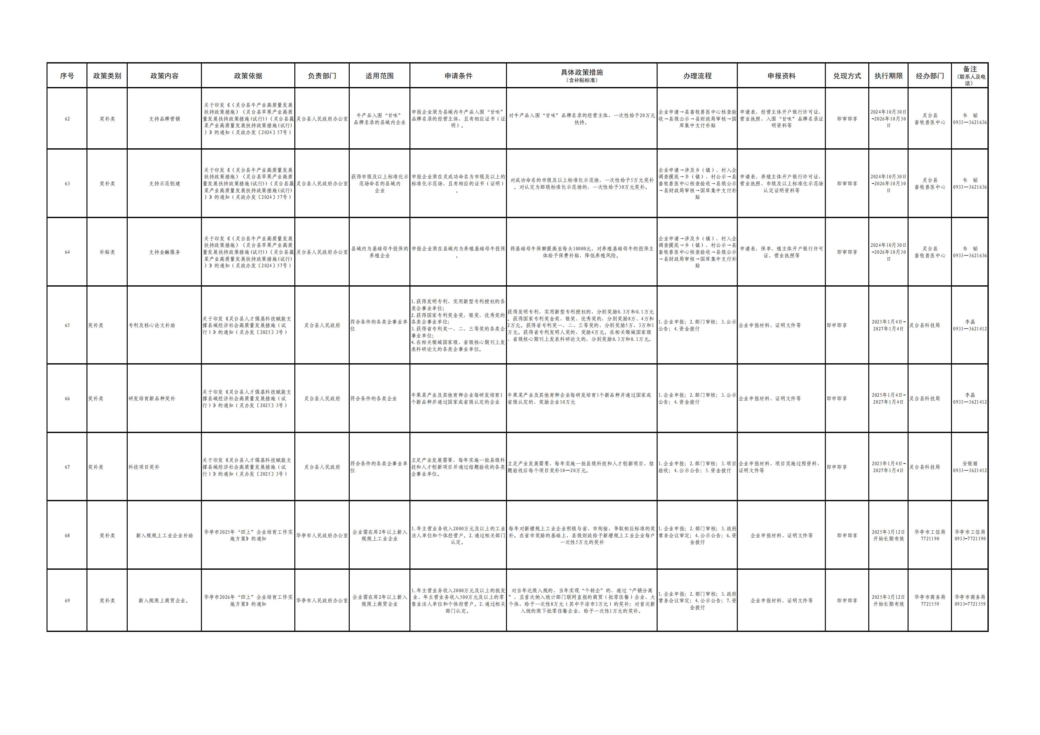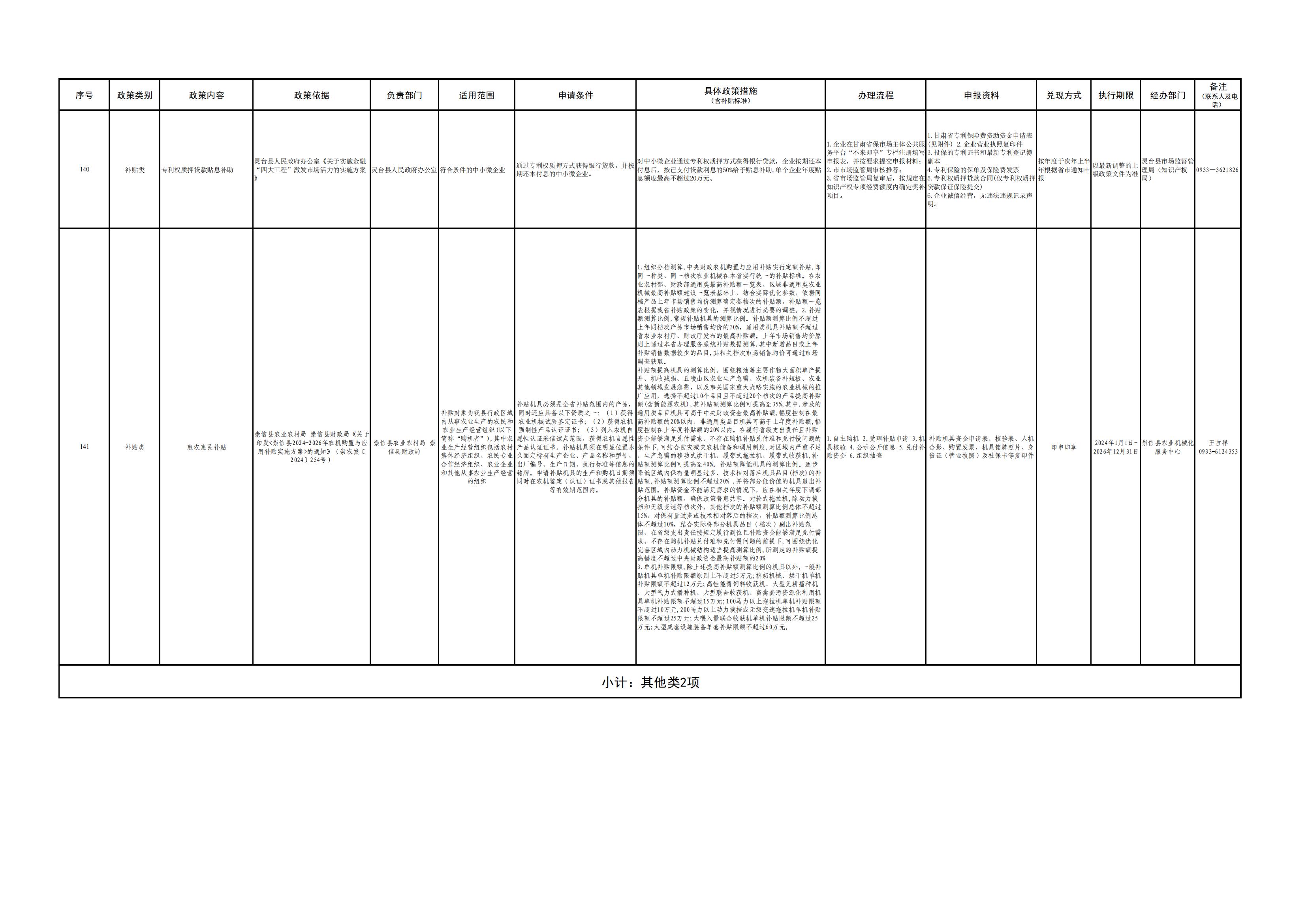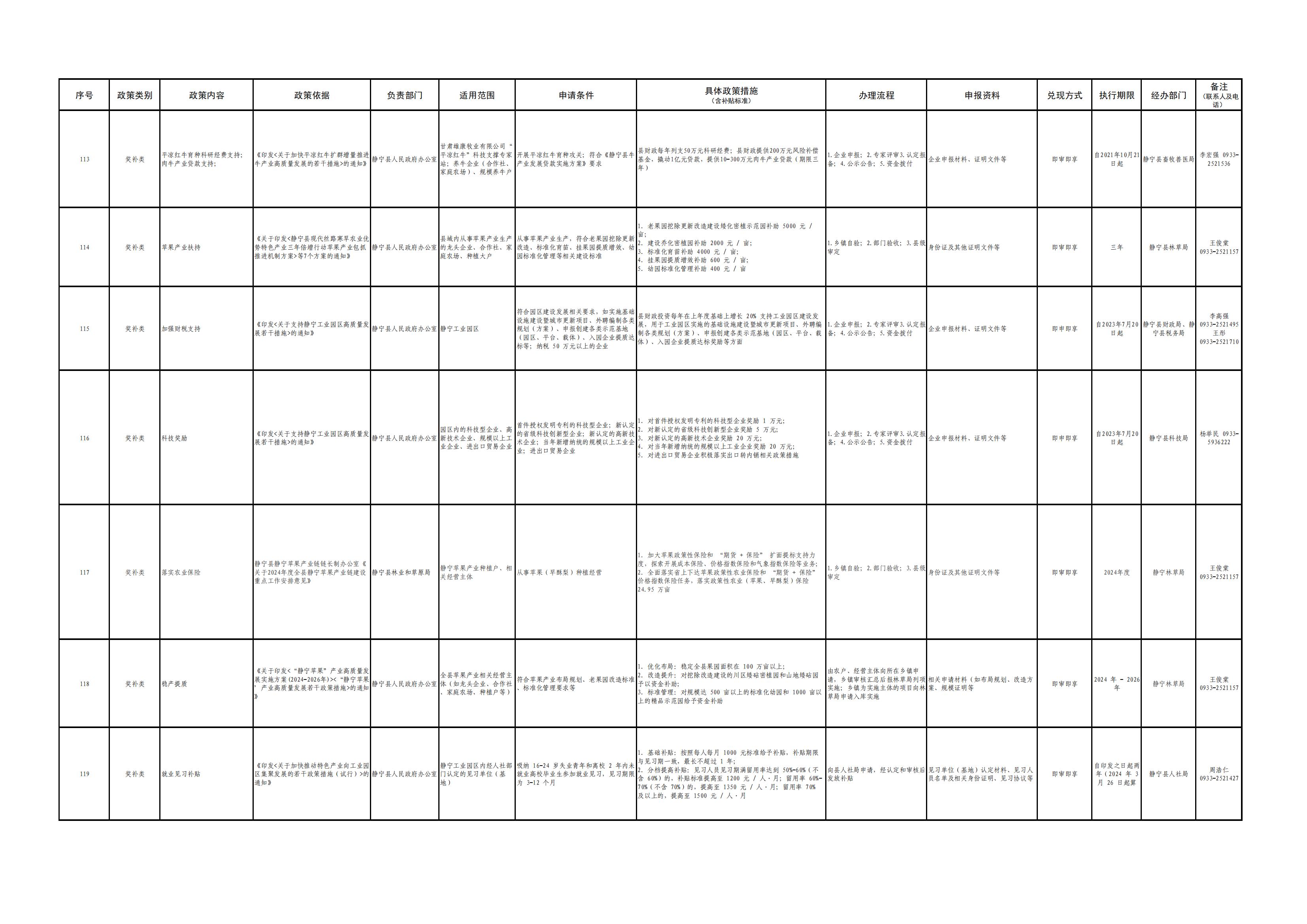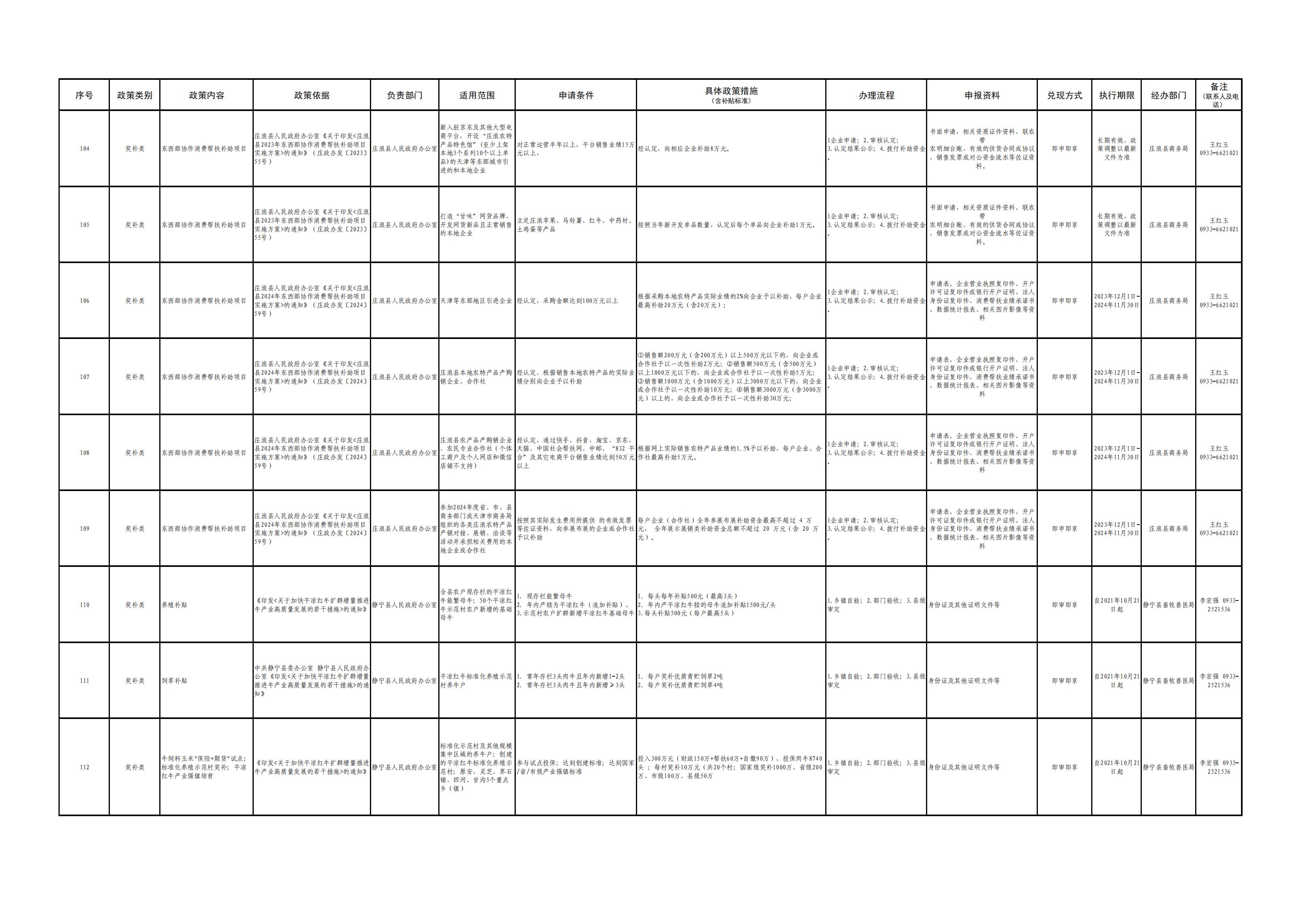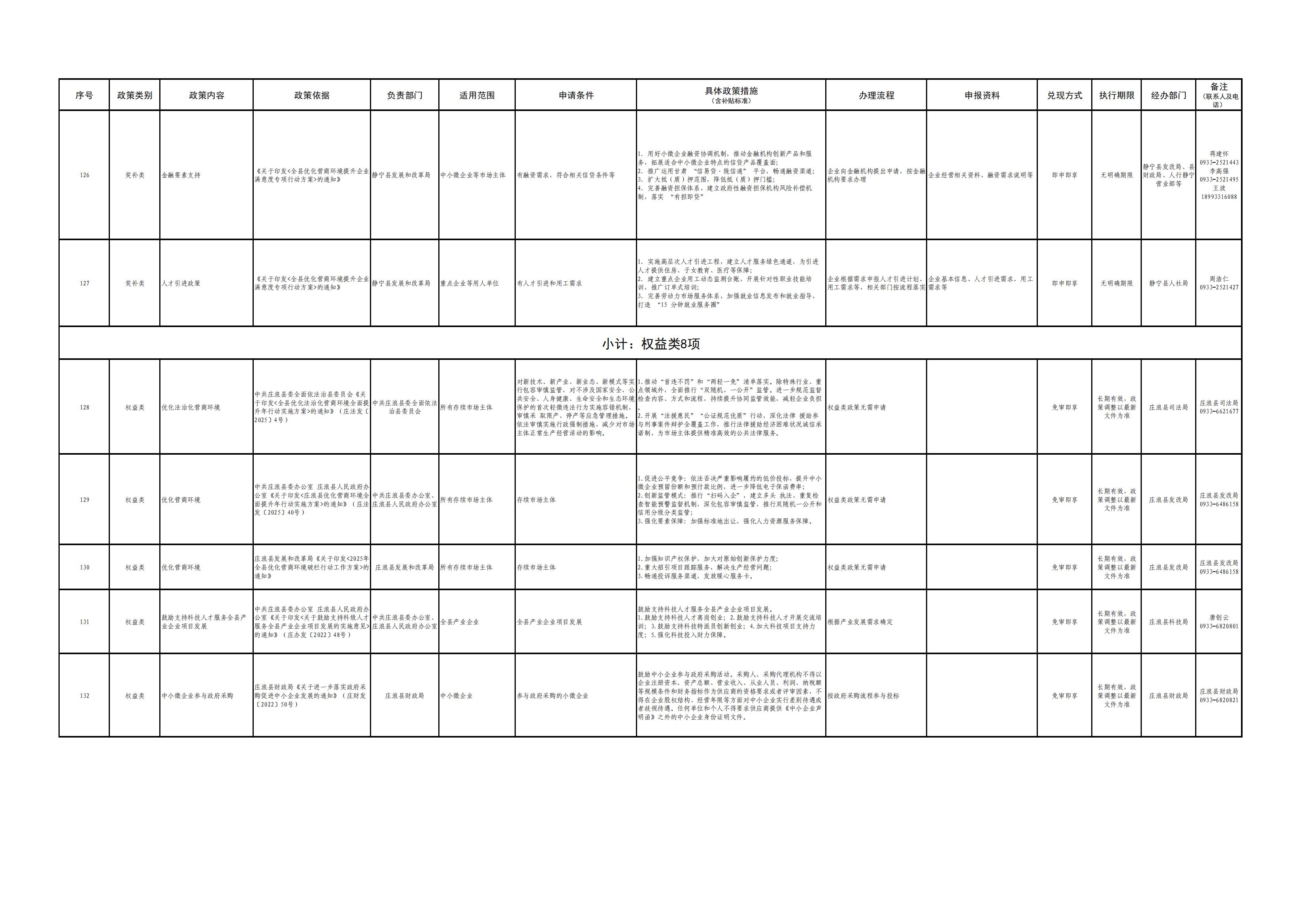 平凉市各县(市、区)涉企政策清单(第一批)