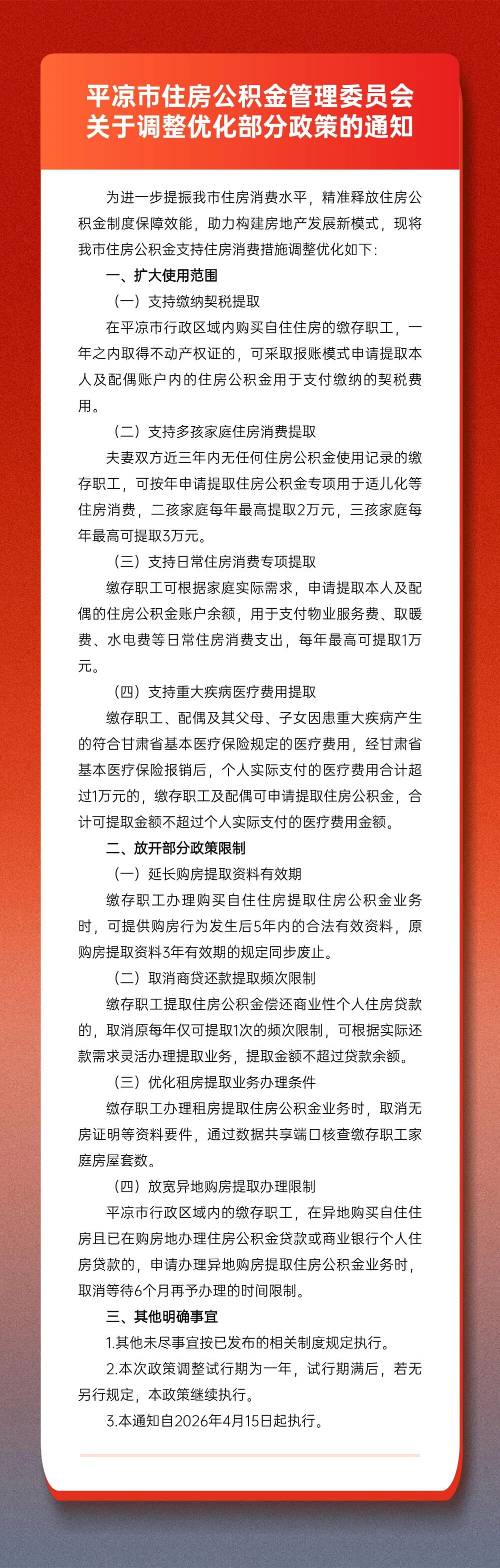 平凉市住房公积金管理委员会关于调整优化部分政策的通知