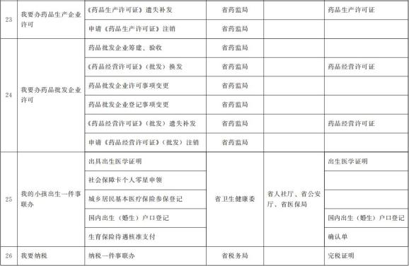 省级第一批“一件事一次办”事项目录