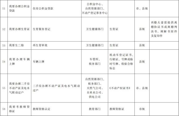 (一)梳理实施事项清单。各地各部门对照行政权力事项和公共服务事项清单,围绕公安、市场监管、教育、医疗、住房、社保、民政、交通等重点领域,全面梳理办事频率高、群众获得感强、涉及优化营商环境的“一件事一次办”事项清单。各市州要按照“成熟一批、公布一批、实施一批”的要求,对照“一件事一次办”参考目录,确定首批“一件事一次办”目录清单,并在甘肃政务服务网市州子站相关栏目公开展示,结合国家和省级最新要求以及机构改革职能变化,同步调整更新事项目录清单。