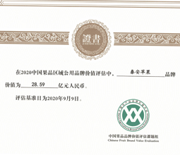 中国果品品牌价值评估证书