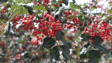 果实艳红色,表面疣状腺点突起明显,果柄短,