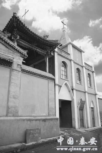 天主堂,位于县城南下关25号,县招待所南200米处。该教堂是天水地区中西合璧的保存较为完整的古建筑之一。