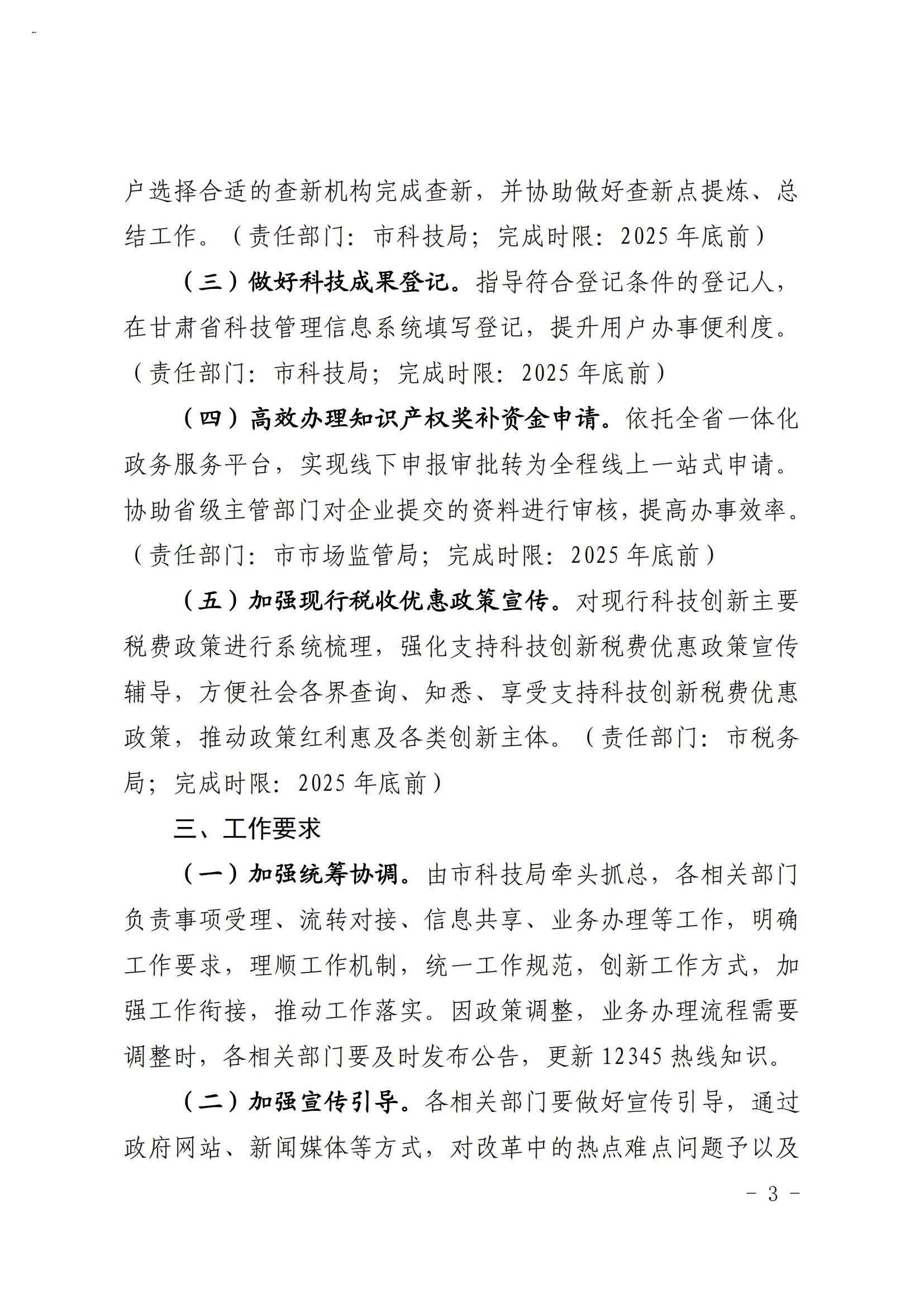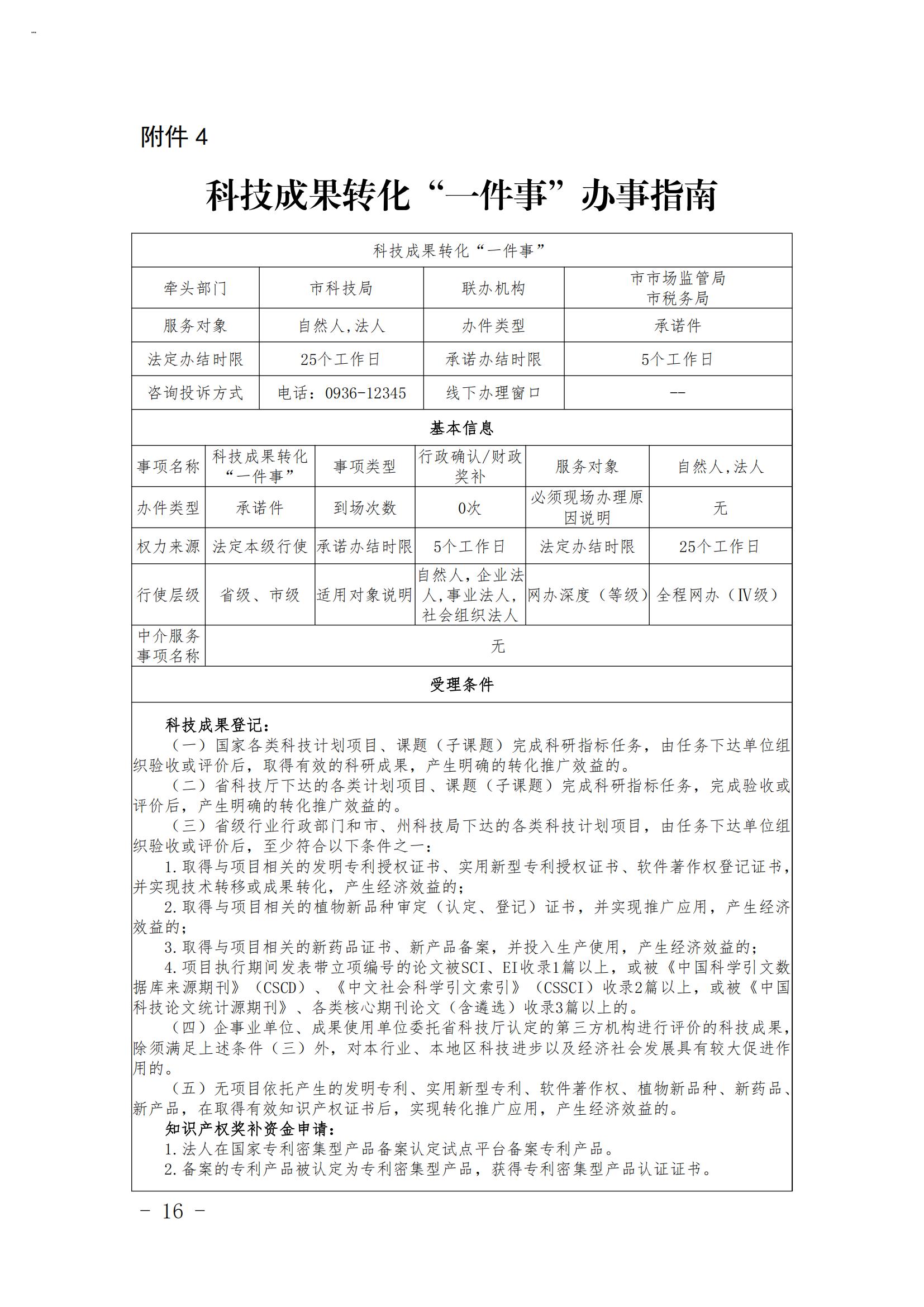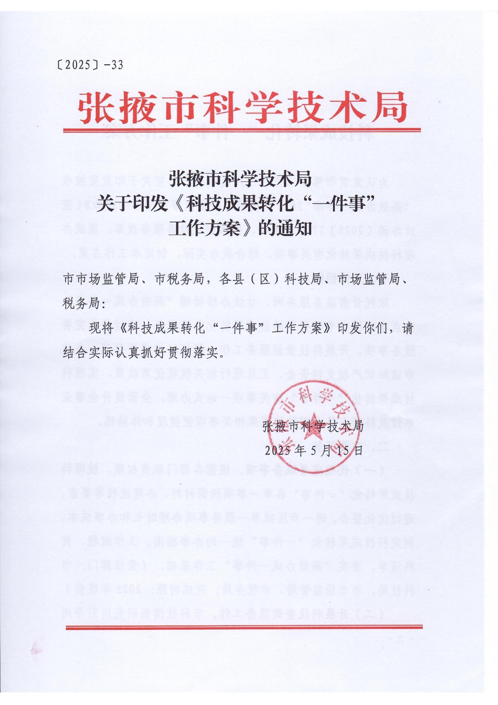 张掖市科学技术局关于印发《科技成果转化“一件事”工作方案》的通知