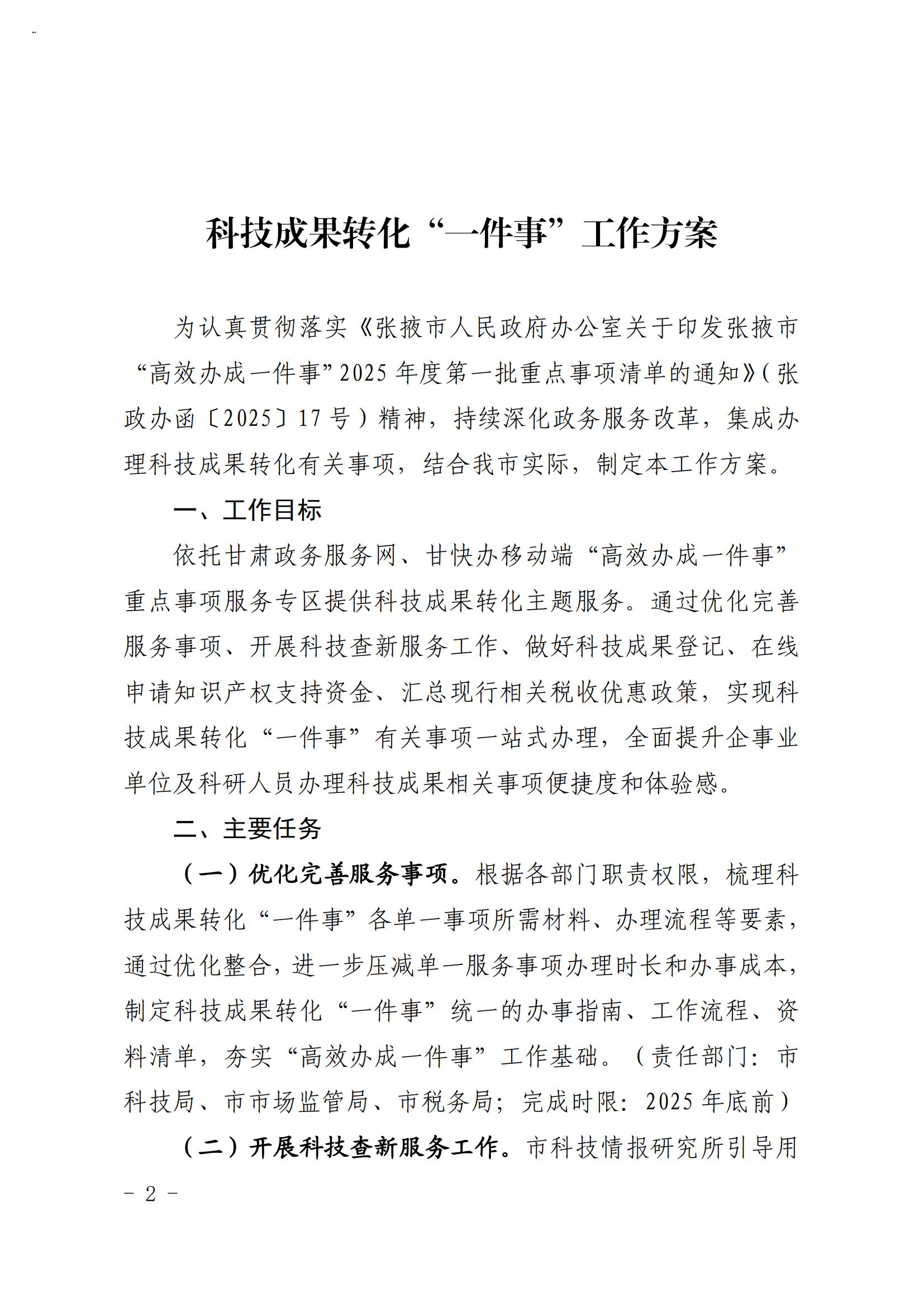 张掖市科学技术局关于印发《科技成果转化“一件事”工作方案》的通知.pdf