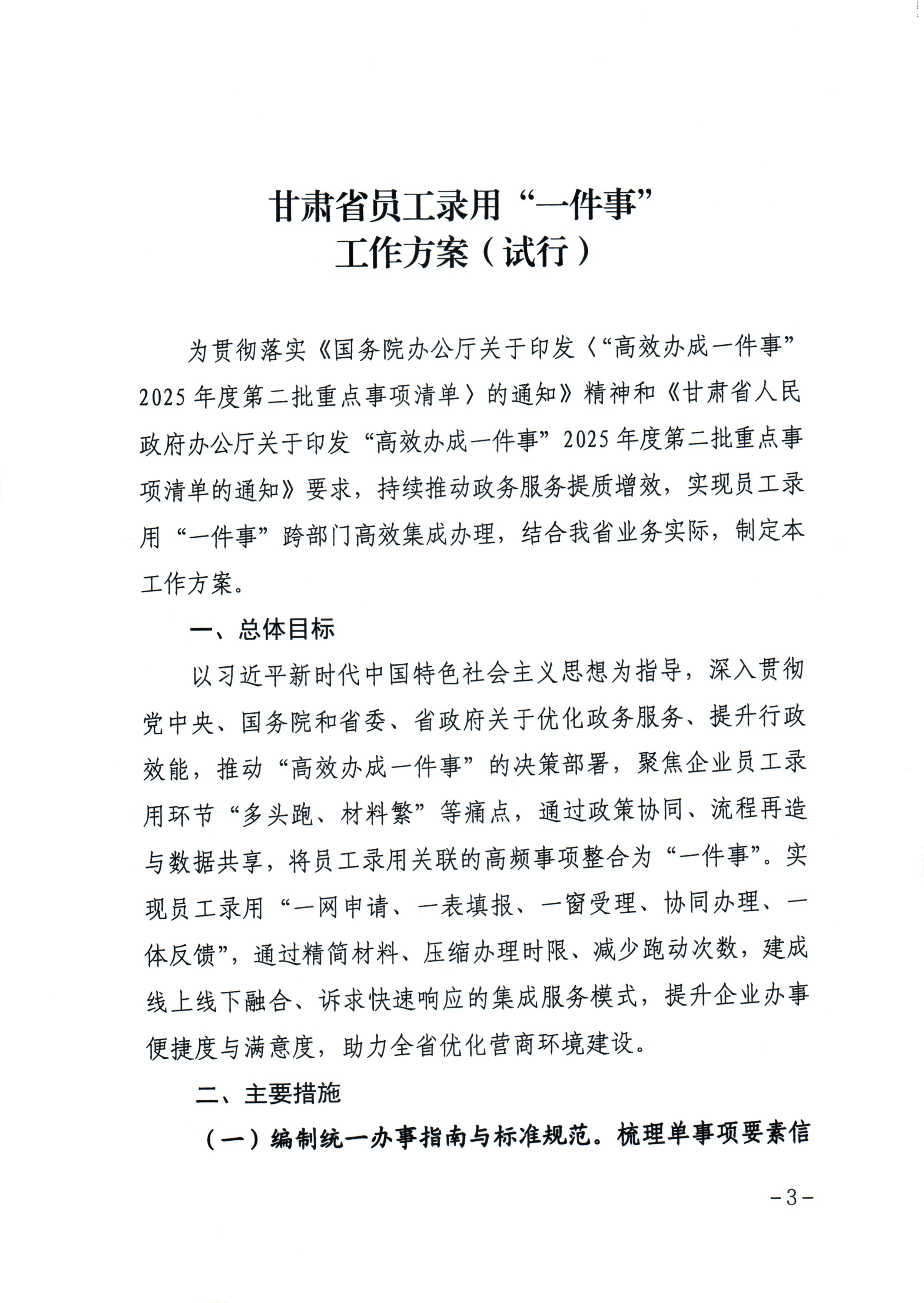 关于印发《员工录用一件事工作方案(试行)》的通知