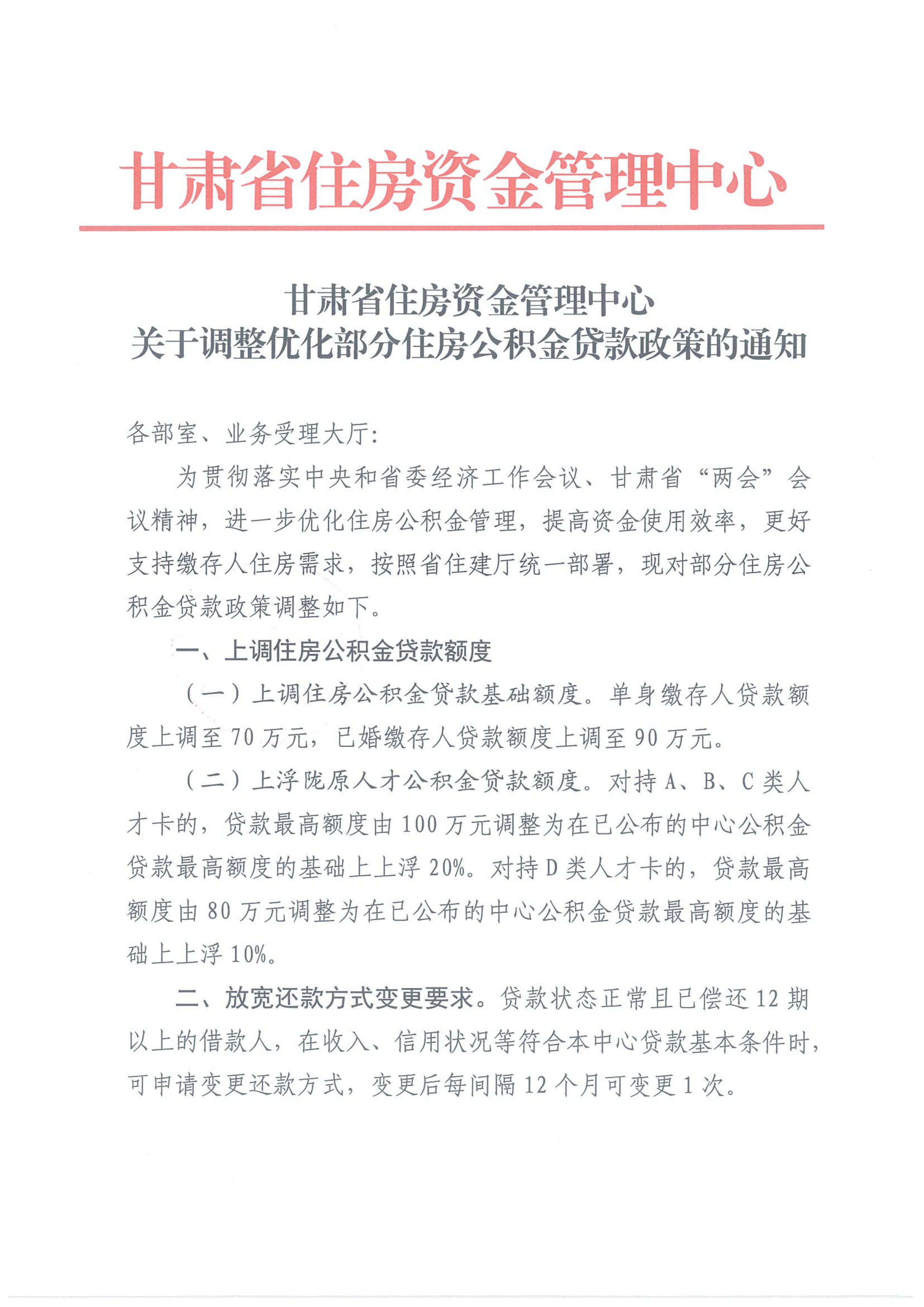 甘肃省住房资金管理中心关于调整优化部分住房公积金贷款政策的通知