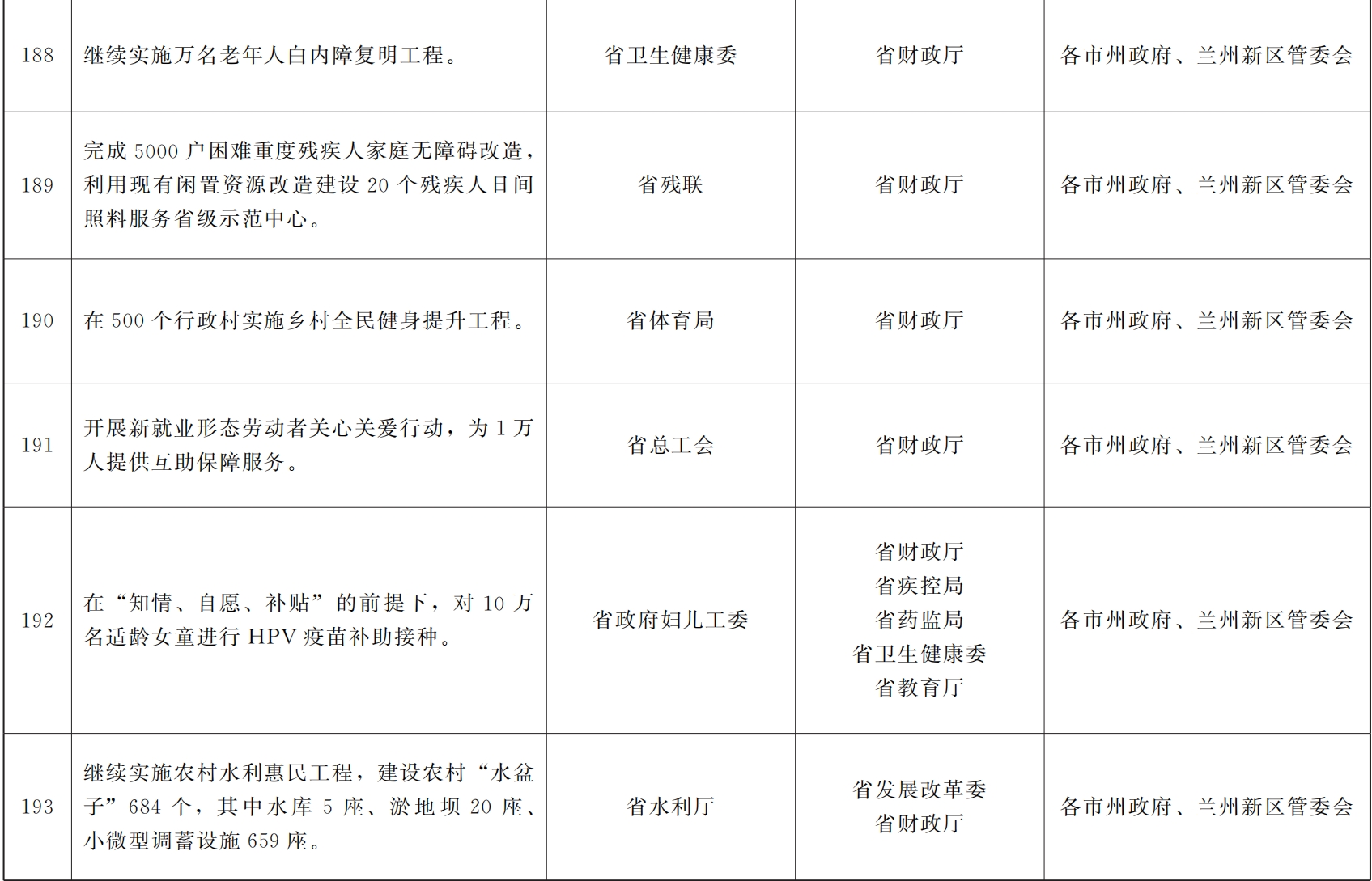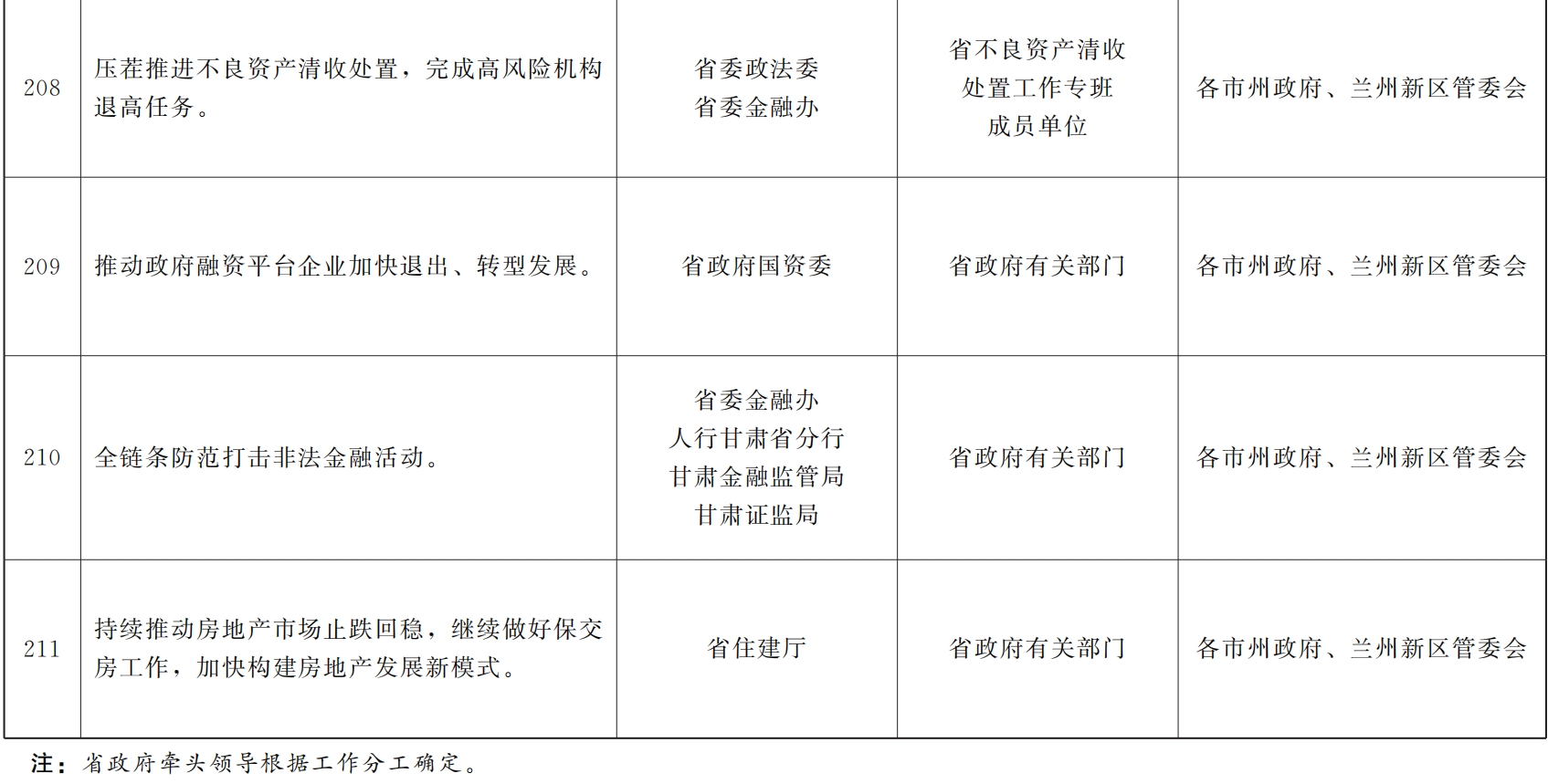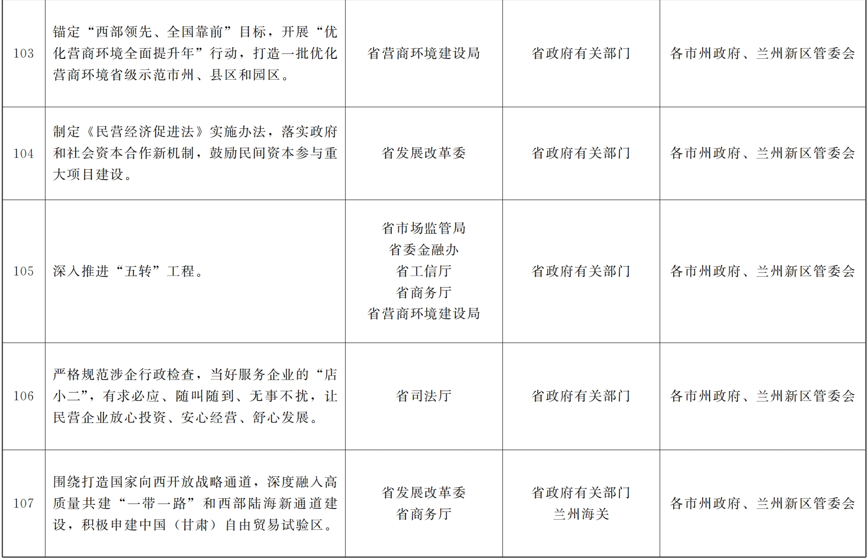 各市、自治州人民政府,甘肃矿区办事处,兰州新区管委会,省政府各部门,中央在甘各单位:
