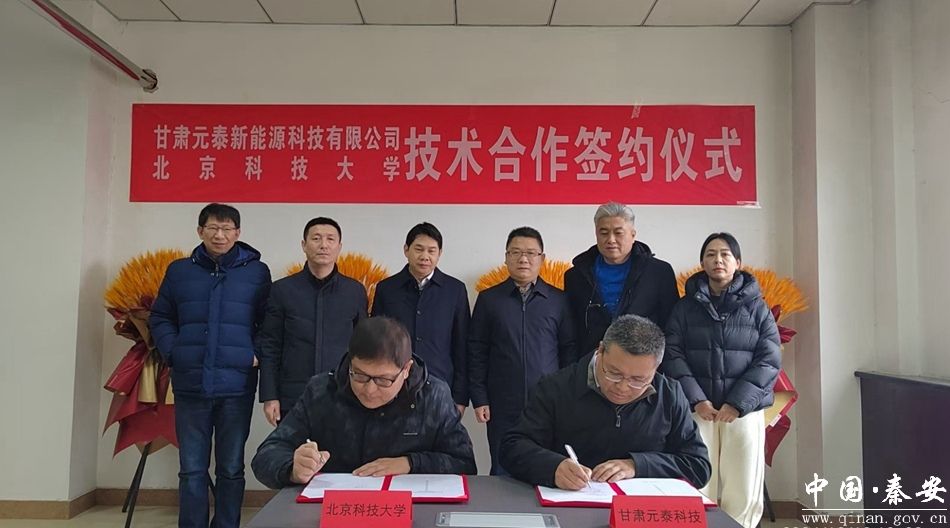 新天水讯 据秦安县融媒体中心消息 12月19日,北京科技大学与甘肃元泰新能源科技有限公司技术合作签约仪式在甘肃元泰新能源科技有限公司举行。北京科技大学乡村振兴与县域经济发展研究院执行院长沈崴,县政府副县长景鹏,县工业集中区管委会及甘肃元泰新能源科技有限公司相关负责人出席签约仪式。