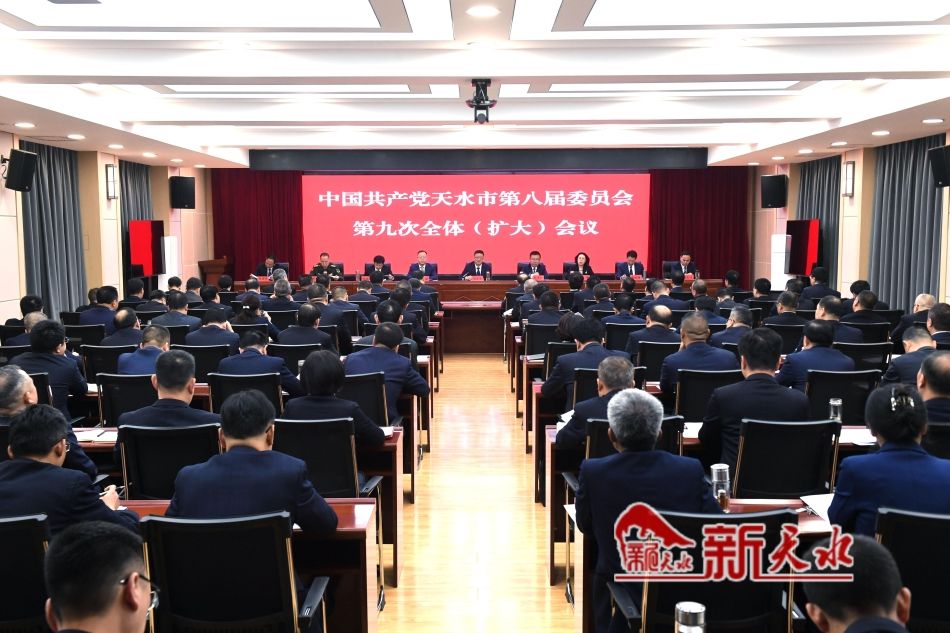 10月8日,中国共产党天水市第八届委员会第九次全体(扩大)会议召开。会议深入学习贯彻习近平总书记视察甘肃重要讲话重要指示精神,认真贯彻落实党中央关于新时代推动西部大开发、全面推动黄河流域生态保护和高质量发展等重大战略决策部署,传达学习省委十四届六次全会精神,安排部署贯彻落实工作。全会审议通过了《中共天水市委关于深入学习贯彻习近平总书记视察甘肃重要讲话重要指示精神、奋力谱写中国式现代化天水篇章的意见》。