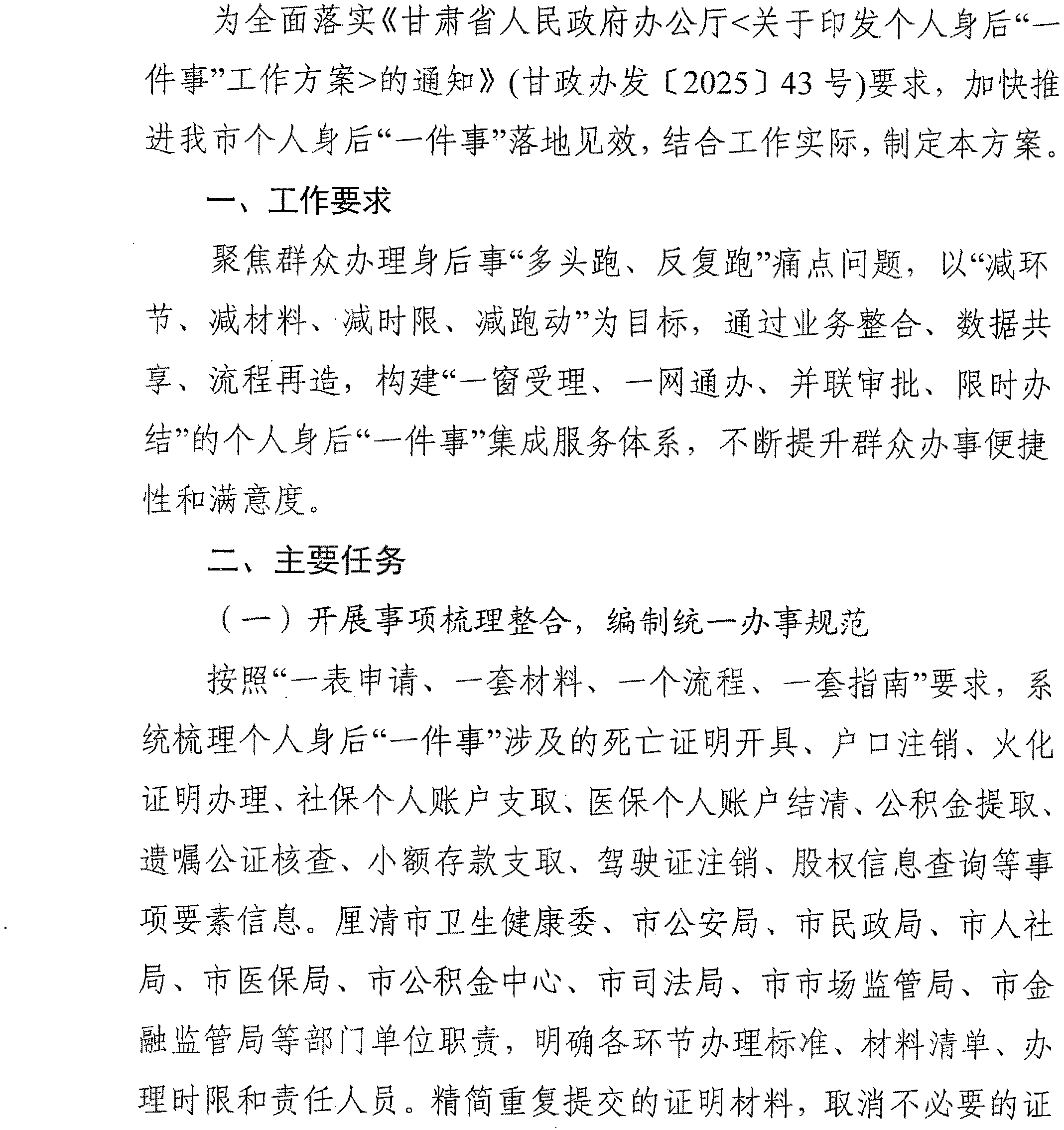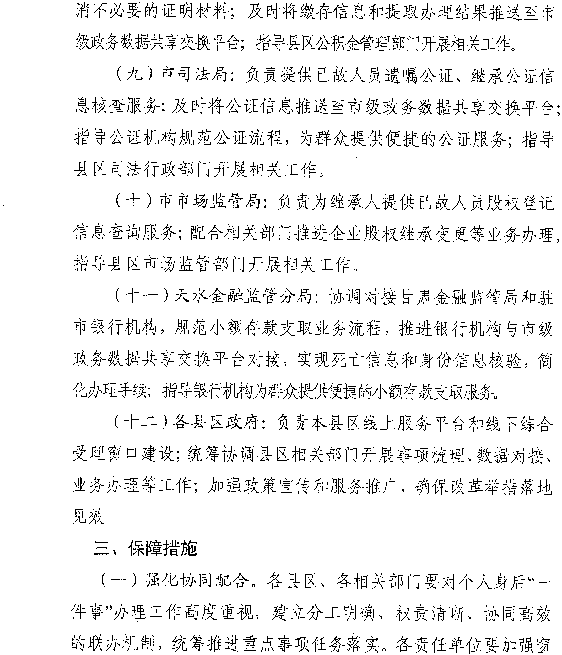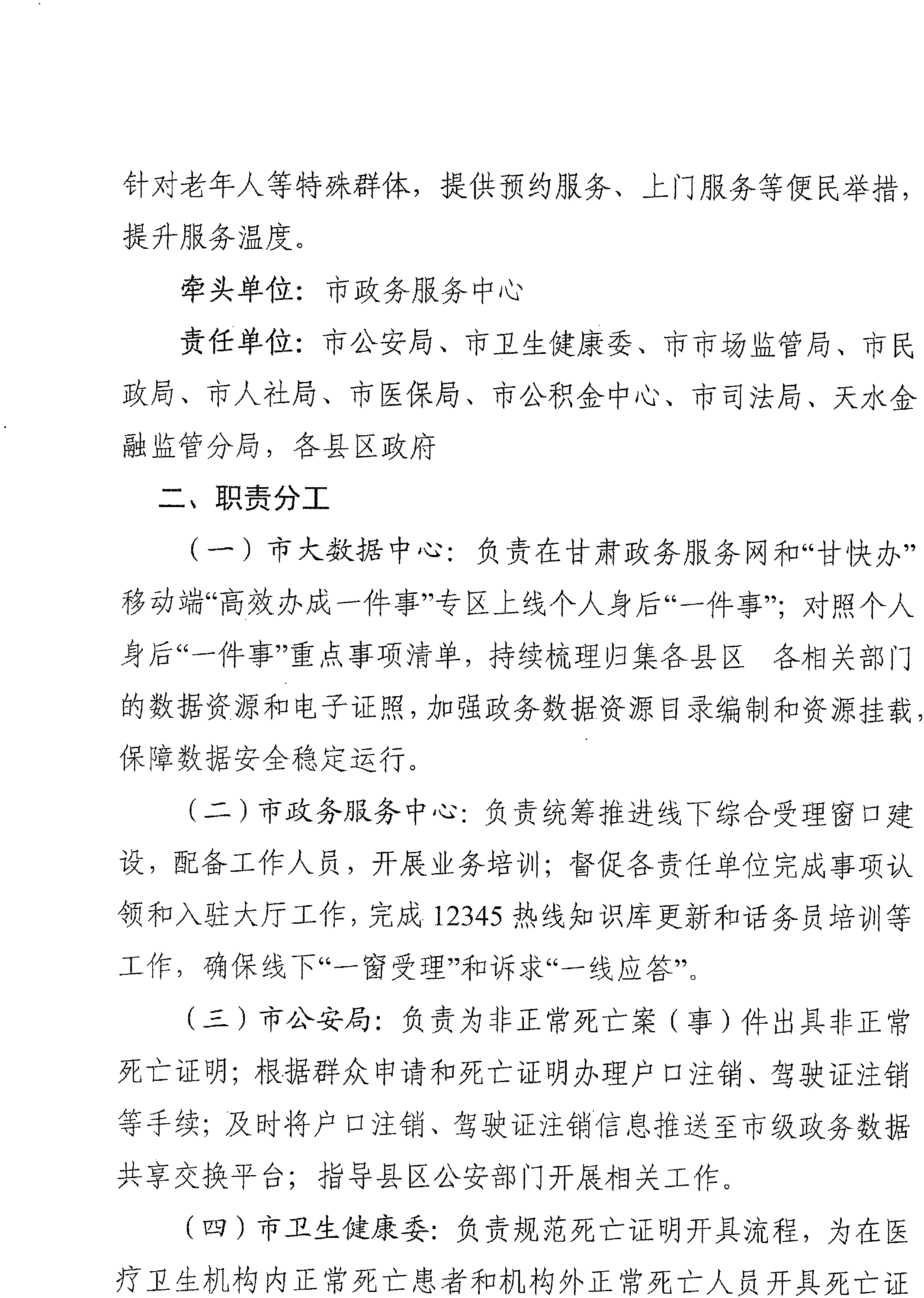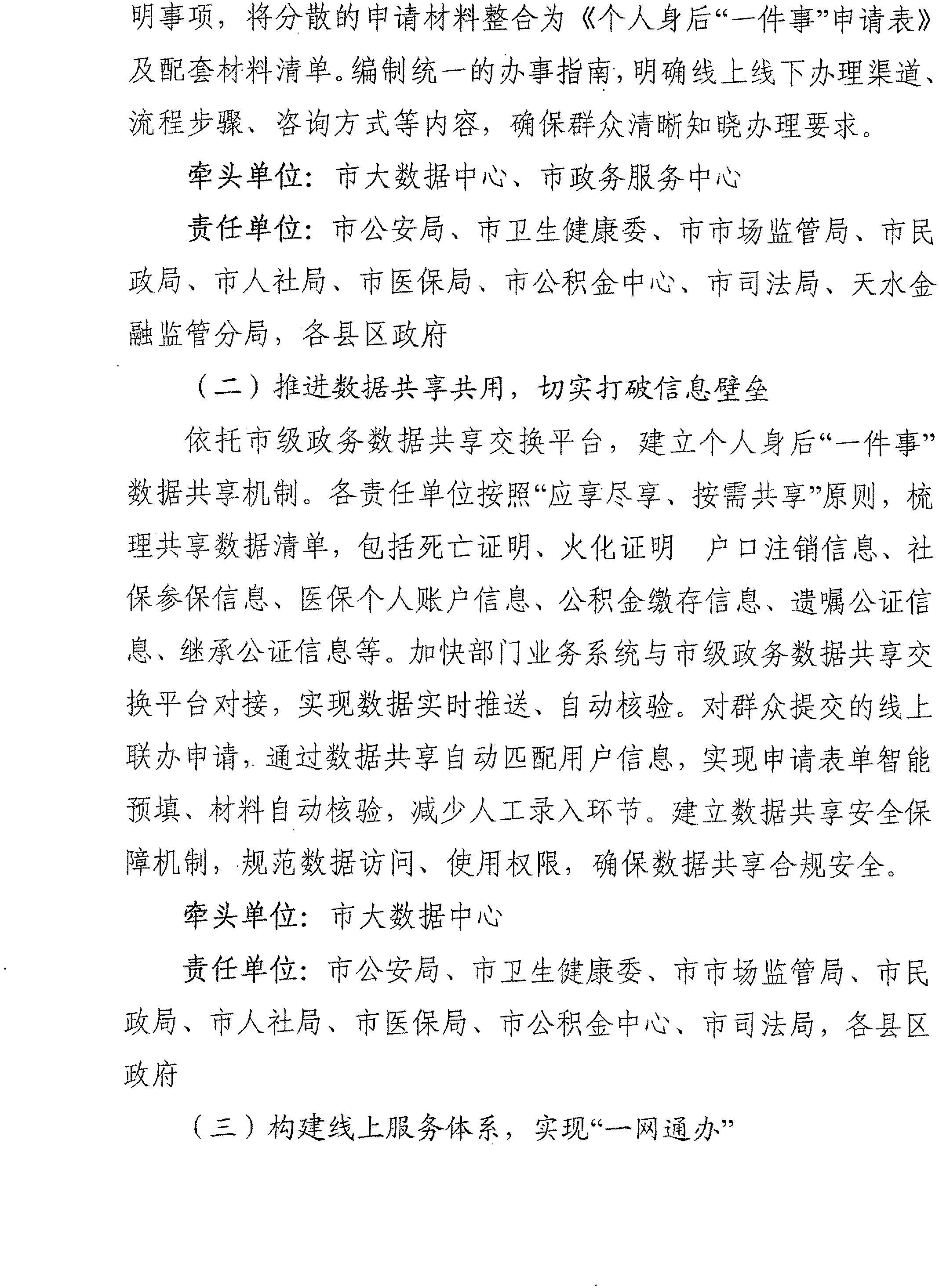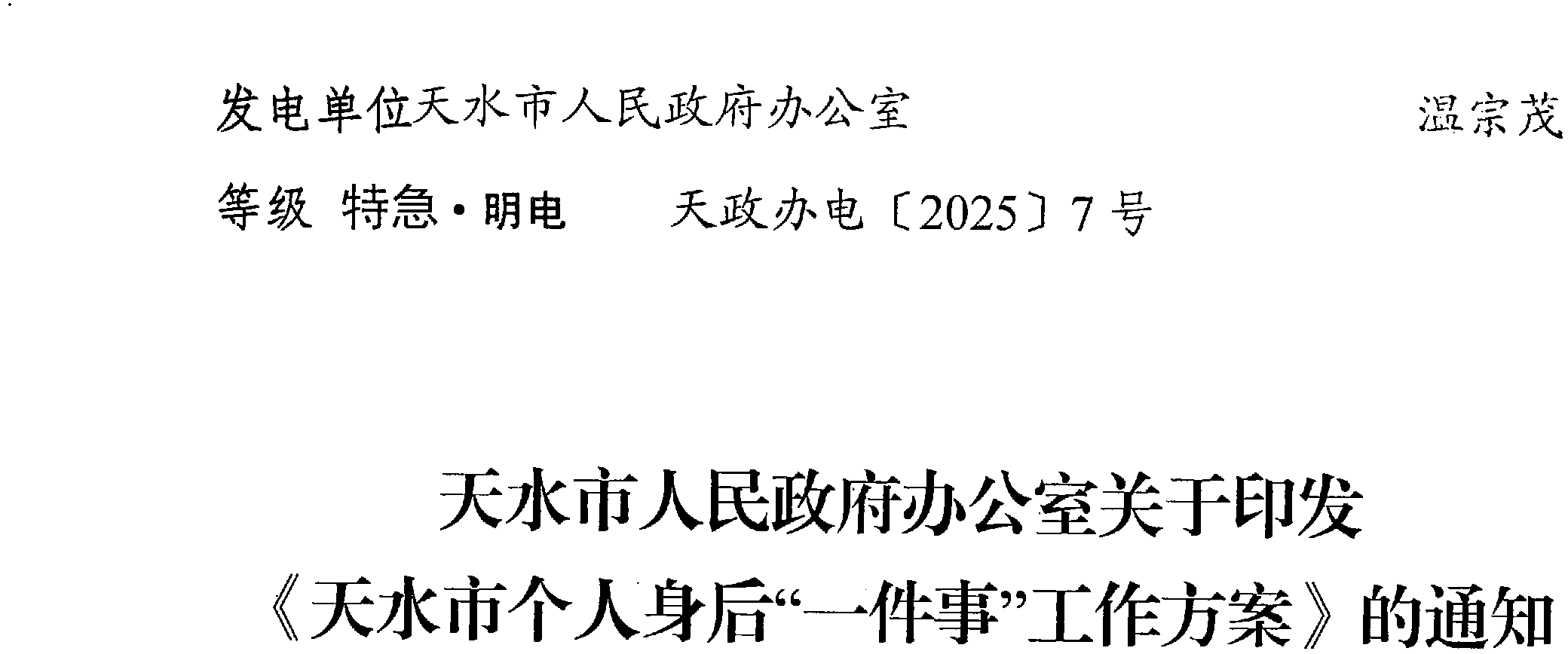 天水市人民政府办公室关于印发《天水市个人身后“一件事”工作方案》的通知