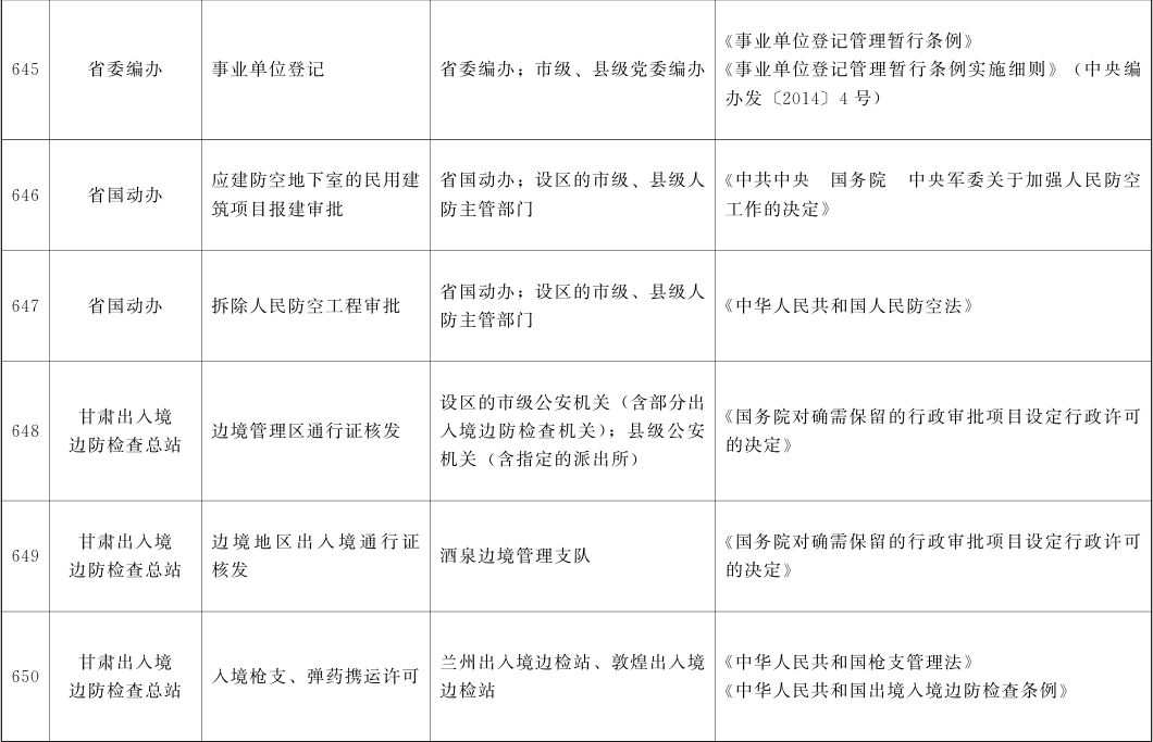 根据国务院办公厅2025年5月23日公布的《法律、行政法规、国务院决定设定的行政许可事项清单》,省政府办公厅会同有关部门修订形成《甘肃省行政许可事项清单(2025年版)》,经省政府同意,现予公布。