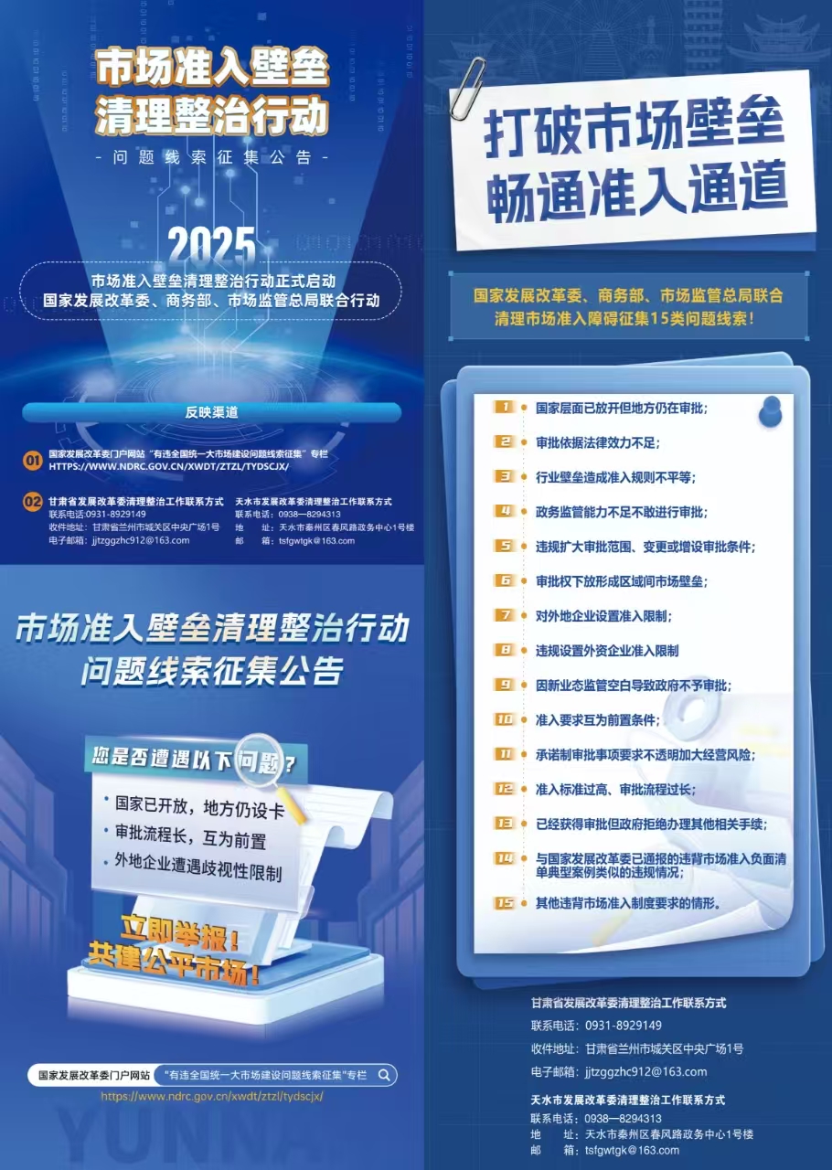 市场准入壁垒清理整治行动问题线索征集公告海报