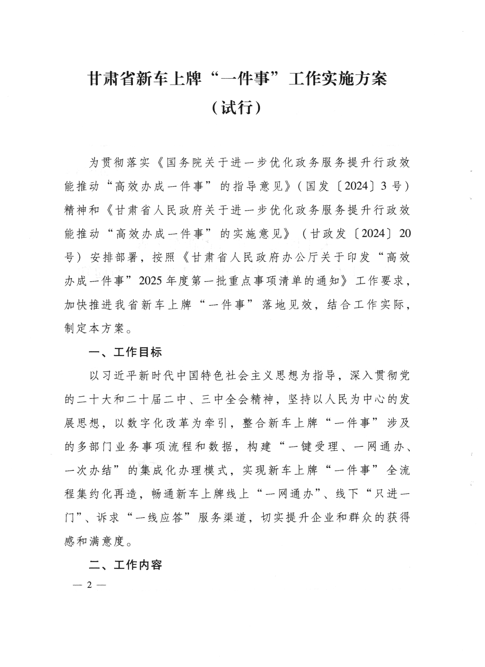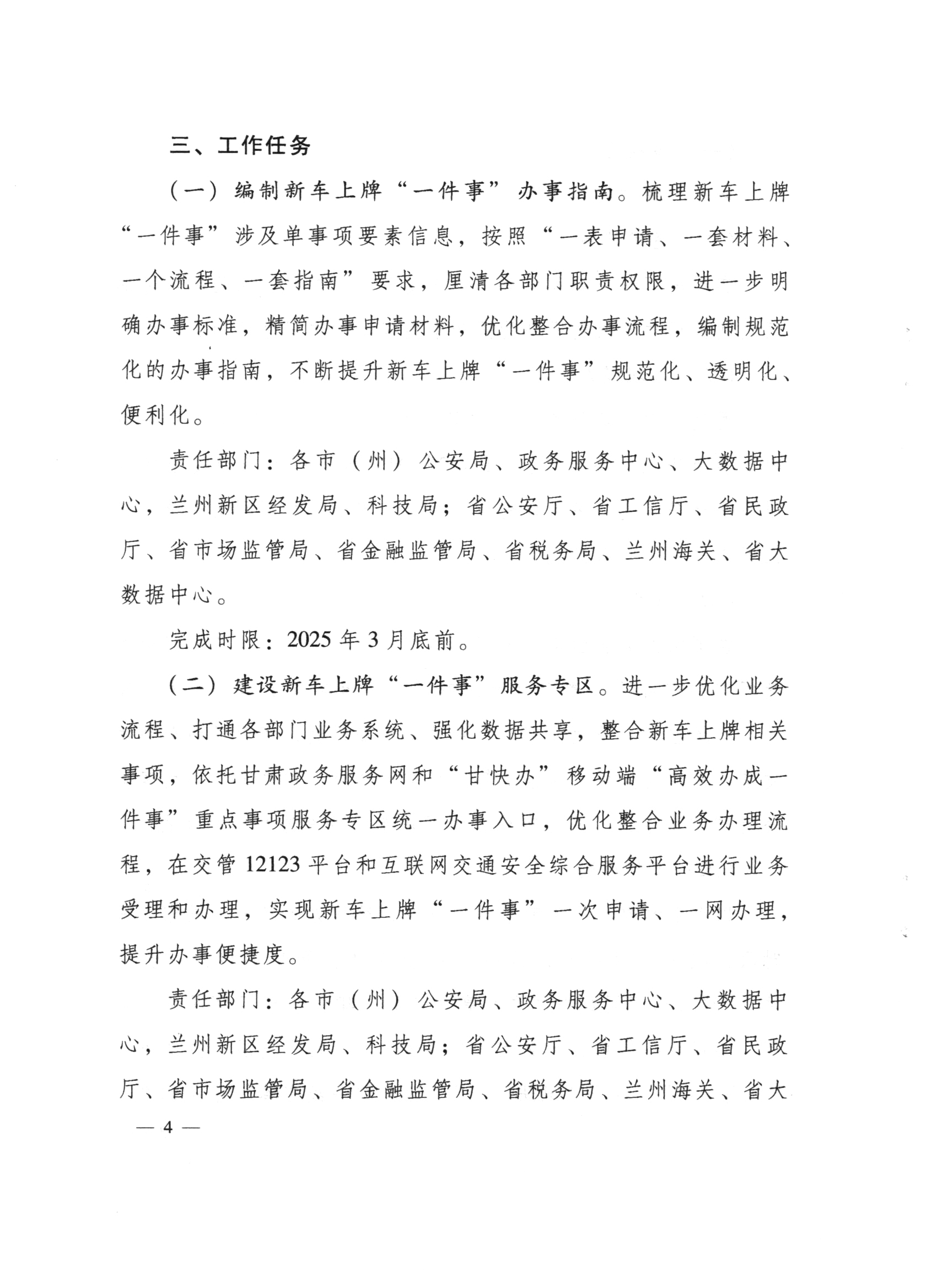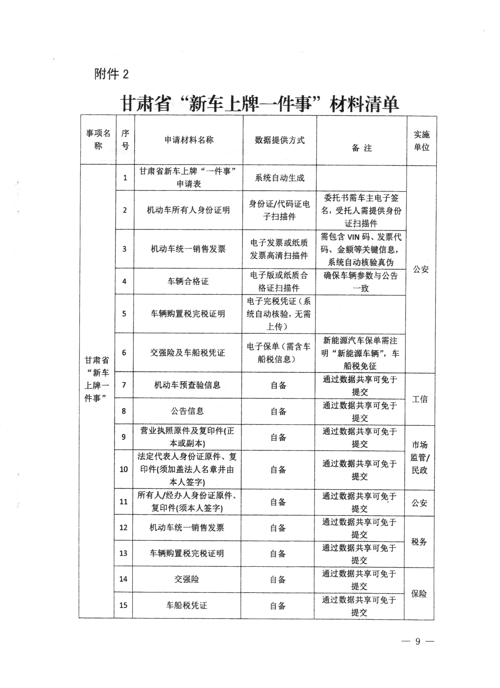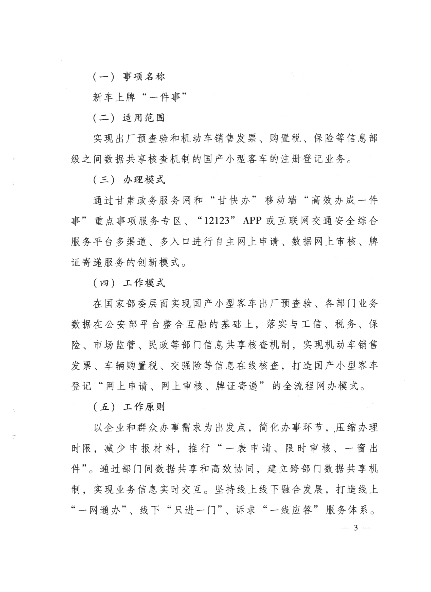 关于印发<甘肃省新车上牌“一件事”工作实施方案(试行)>的通知