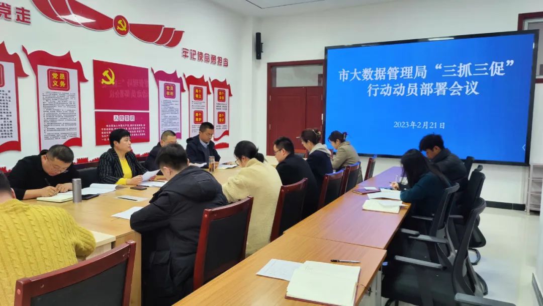 会议传达学习了全省、全市“三抓三促”行动动员部署会议精神。会议指出,开展“三抓三促”行动是落实党中央部署的政治自觉,是破解难题的重拳出击,是推动高质量发展的有力举措。全局上下要从领袖嘱托、使命所系、群众所盼、发展所需四个方面深刻感悟重大意义,做到思想真认同。要深入学习贯彻党的二十大精神和习近平总书记对甘肃重要讲话重要指示批示精神,认真落实全省、全市“三抓三促”行动部署要求,以坚决的态度、严实的作风,把 “三抓三促”行动抓紧抓实抓出成效,推动大数据工作高质量发展。