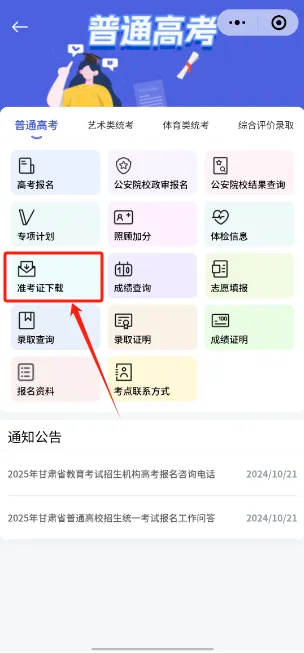 1、使用微信搜索“甘肃招考”小程序,并登录。(注:若当前使用的微信号已与甘肃省国家教育考试综合管理平台账号绑定,则直接使用微信账号一键登录即可。若不是则输入身份证号、密码登录。)