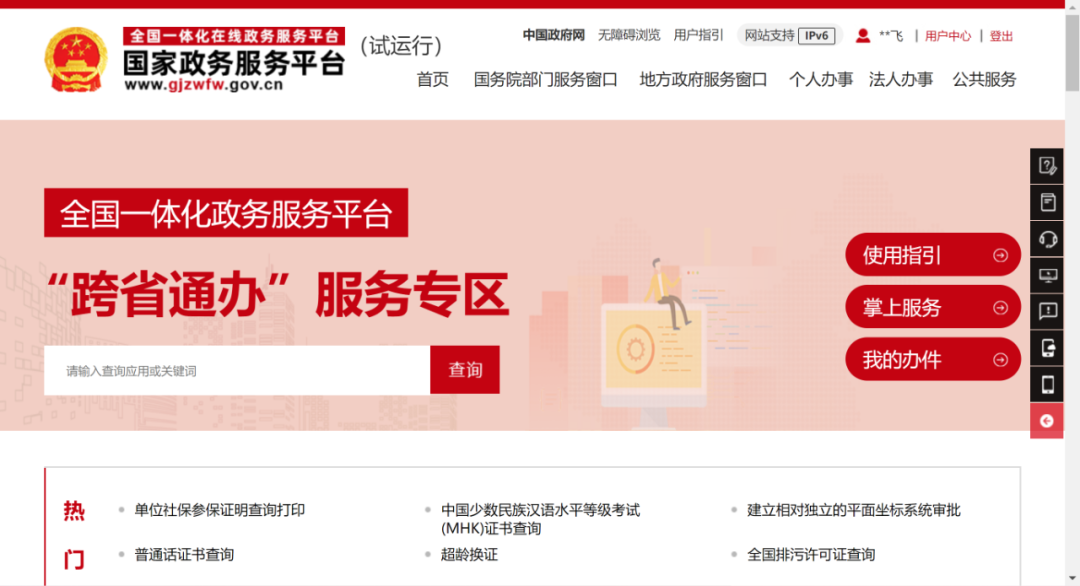 http://gjzwfw.www.gov.cn/fwmh/crossProvincial/index.do
