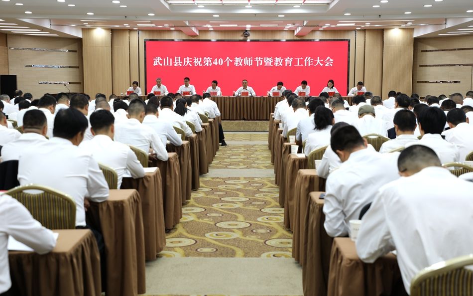 新武山讯(记者 蒲爱民 康正东 管秋勇)9月6日,武山县召开庆祝第40个教师节暨教育工作大会,县委书记王新强出席并讲话,县委副书记、县长王志成主持会议,县人大常委会主任孙德银、县政协主席庞明全及县四大班子相关领导出席会议,各乡镇、县直相关部门负责人,各学区、各级各类学校党组织书记和校(园)长、教师代表参加会议。