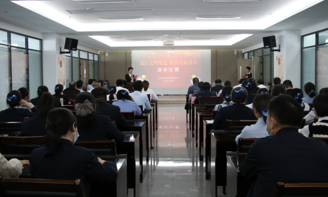 ▲“践行文明服务规范,做最美政务人”演讲比赛