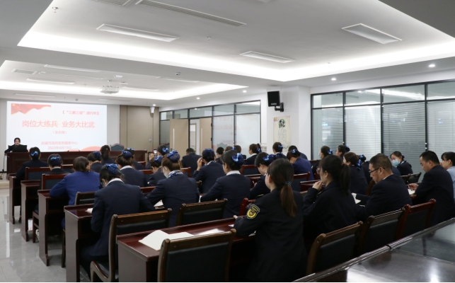 结合“三抓三促”行动,组织开展“岗位大练兵 业务大比武” 业务讲练活动,持续开展业务知识学习、专题培训,组织工作人员参加岗位技能练兵、政务服务演讲比赛,开展绩效考核、最美政务人评选等活动,充分调动窗口工作人员学政策、钻业务、练技能、强服务的积极性和主动性,切实提升人员综合素质、服务意识和本领。