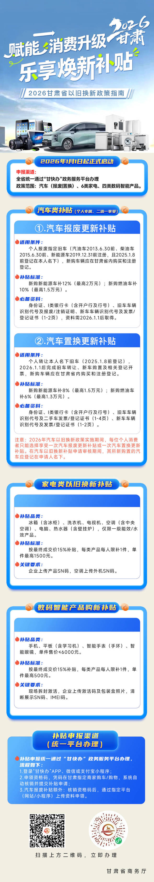 赋能消费升级 乐享焕新补贴 2026甘肃省以旧换新政策指南