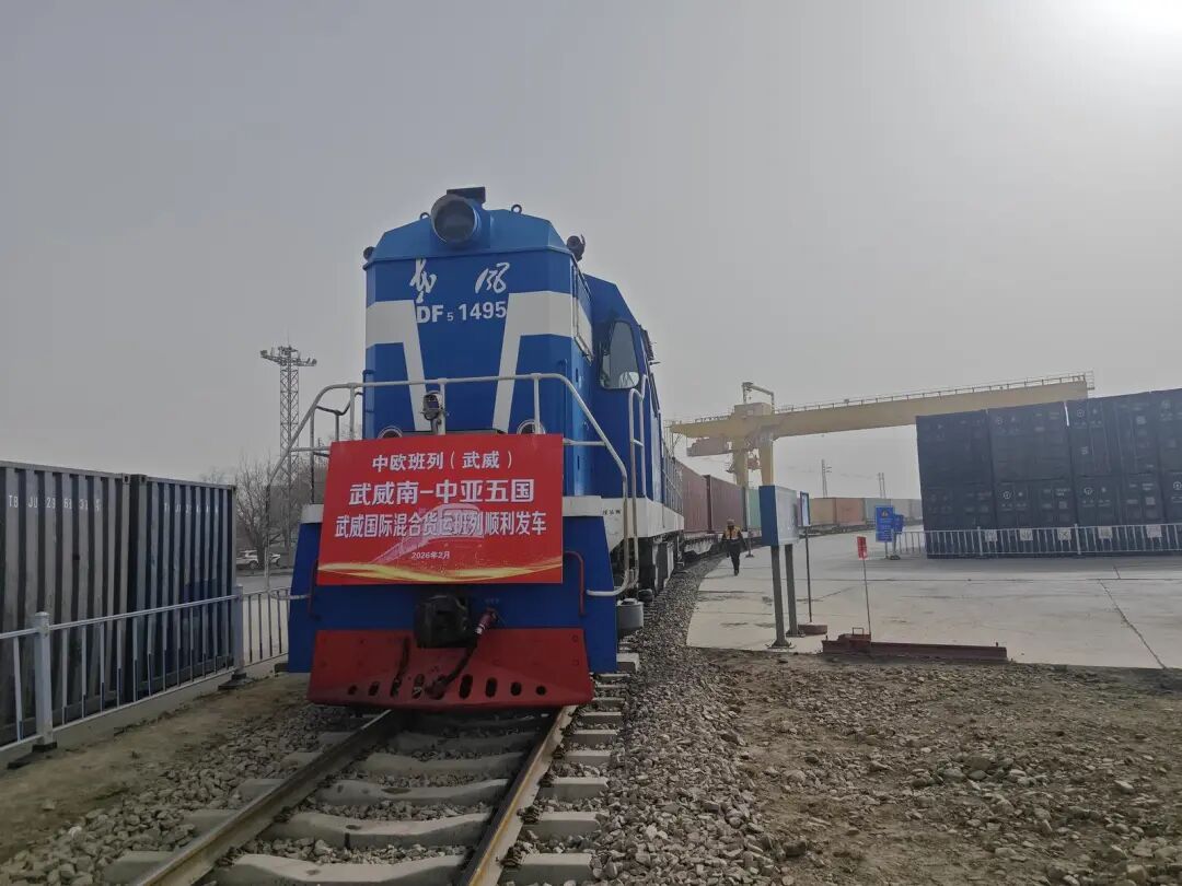 此趟班列共发运55车,货重1300多吨,货值1600多万元,是甘肃(武威)国际陆港农历新年开行的首趟中亚班列。为保障班列高效顺畅开行,武威国际陆港强化多部门协同联动。金昌海关靠前服务、优化监管,助力货物快速通关;兰州铁路局物流中心、武威南站科学统筹运力,精细组织装卸作业;中铁集装箱兰州分公司落实全程运输方案,各环节紧密衔接、高效协同,保障班列春节期间常态化运行。