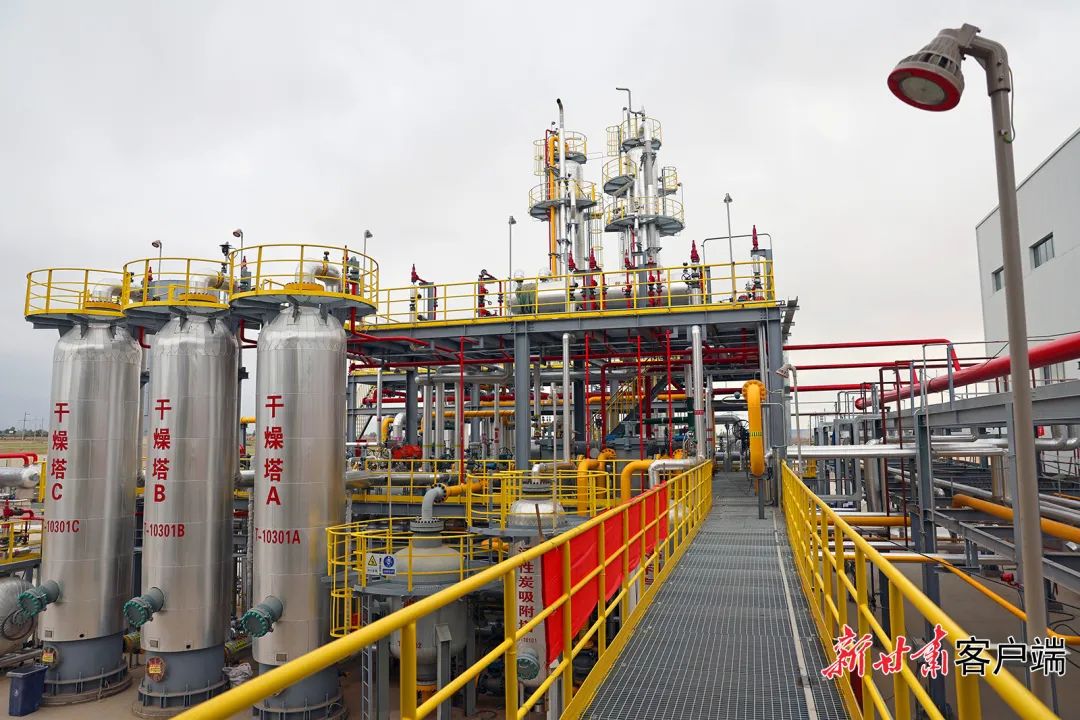 俯瞰整个项目作业区,净化气体分离器、干燥塔、燃料气体缓冲罐等“庞然大物”整齐排布在各大功能区域。