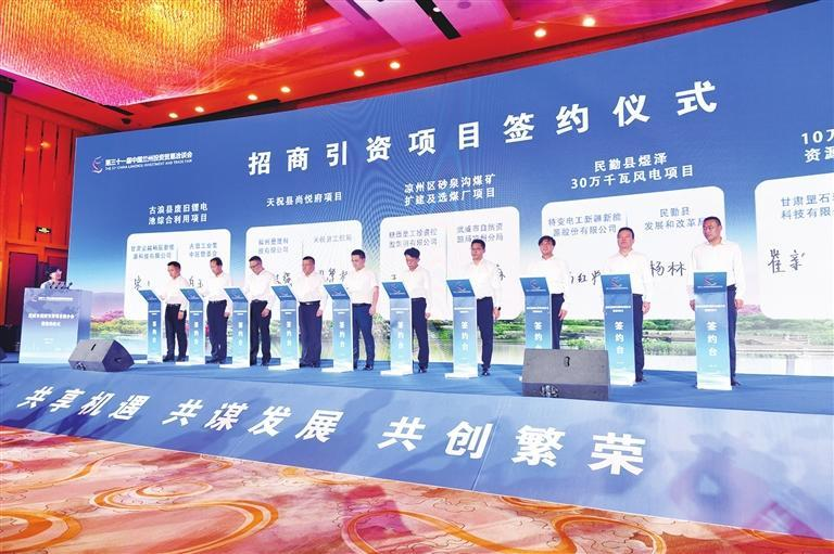 古浪县亿恒宝华光伏电站。民勤县浙能武威调峰火电机组工程项目建设现场。 祁连雪峰映照着古城新颜,石羊河水滋养着发展热土。 武威,自古就是商旅往来、市日四合的“通都大邑”,在历史过往中见证过古丝绸之路的灿烂辉煌。如今,承续着“丝路商埠”的千年底蕴,这方古老的商贸之地已跃迁成为如今的投资高地、兴业福地、发展旺地,在高质量发展的浪潮中焕发出蓬勃生机。 从兰洽会签约现场的掌声雷动,到产业园区里的机器轰鸣,从“陇电入浙”的戈壁雄姿,到政务大厅里的春风拂面,2025年,武威聚力发展第一要务,坚持把项目建设和招商引资作为两大主引擎,着力强园区、活县域,内生动力持续增强,书写着赶超进位、跨越崛起的奋进篇章。甘肃达华节水科技股份有限公司生产车间。第三十一届兰洽会武威市招商引资项目推介会暨签约仪式现场。谋篇布局定方向 项目建设高歌猛进 提速争先,方能赢得发展先机;乘势而上,才能激发奋进动能。 2025年伊始,武威市便将项目建设作为高质量发展的“生命线”,锚定固定资产投资增长目标,围绕9条重点产业链和5个百亿级产业集群,科学谋划“五个清单”项目体系,为全年发展画出清晰“路线图”。 春节后首日,全市高质量发展重大项目建设暨招商引资工作动员大会召开,与省上同步启动重大产业项目集中开工活动,《关于加快实施“五个清单”项目持续扩大有效投资的通知》迅速落地,逐项目明确时序、目标与责任,构建起“市级统筹、县区主责、部门协同”的责任闭环。 武威市委常委会会议、市政府常务会议定期“把脉”项目建设,分析进展、破解难题,“项目建设百日攻坚”行动扎实推进,重大项目工作专班下沉一线,及时化解堵点。截至10月底,285个高质量发展重大项目年度计划投资完成率达95.4%,10个省列重大项目完成率更是飙升至119%。 项目建设是经济增长的“压舱石”。2025年,武威市聚焦能源、特色产业、基础设施等关键领域,全力推进重大项目建设,一批投资规模大、带动能力强、发展前景好的重点项目落地生根、开花结果,为全市经济发展注入了强劲动力。 作为国家“十四五”电力发展规划重点项目,“陇电入浙”工程在武威的建设如火如荼,让武威作为“陇电入浙”能源枢纽的定位愈发清晰。该工程起于甘肃武威、止于浙江绍兴,横跨六省区,线路总长2370公里,总投资约353亿元,投运后每年可输送电量超360亿千瓦时,其中清洁能源占比过半。 在民勤县浙能武威调峰火电机组工程现场,231米高的烟囱与201米的冷却塔遥相呼应,构成戈壁上的工业地标。该项目作为“陇电入浙”配套电源项目,总投资73亿元,设计年利用小时数4500小时,投产后年发电量可达90亿度,能为腾格里沙漠新能源基地电力外送浙江提供有力保障。 “工程不仅能为电力远距离外送提供稳定调峰保障,而且可为民勤县创造800个以上就业岗位,年上缴利税超2亿元。”浙能武威能源有限公司党委委员、副总经理项文杰说。 目前,该工程锅炉房钢结构已全部安装完毕,烟囱、冷却塔均已结顶,于2026年9月与“陇电入浙”特高压工程同步投运。 随着这些能源项目的陆续投用,河西走廊的清洁能源与稳定电力将通过“陇电入浙”通道源源不断输送至浙江,全市新能源接入外送和就地消纳能力不断提升,武威“风”“光”将点亮万家灯火。 在交通基建领域,兰张三四线铁路武张段建设如火如荼,G569线曼德拉至大通公路武威至仙米寺段高速公路顺利通车,武威机场项目取得关键进展,车马交错、无有停绝的丝路要塞盛景重现。 产业项目同样捷报频传。凉州区中央厨房净菜预制菜加工项目投产运营,让“武威味道”走向更广阔的市场;天祝申杰松山滩滩口20万千瓦风电项目并网发电,将高原风能转化为绿色电能。截至10月底,全市已有113个项目建成投运。甘肃重通成飞新材料有限公司风机叶片成型车间。甘肃新玉通新高新材料有限公司。协同发力拓路径 招商引资风生水起 招商引资是经济发展的“源头活水”。唯有精准施策、靶向发力,才能引得“金凤凰”、育出“产业链”。 2025年,武威市跳出传统招商思维,摒弃“大水漫灌”式招商,聚焦9条重点产业链和5个百亿级产业集群,深入实施“引大引强引头部”行动,以“图谱导航、清单引路、活动聚力”的组合拳,让招商工作更具针对性、实效性。 以产业链招商为核心,武威编制完成《产业链招商图谱》等系列清单,收录416项重点项目,总投资达1993.75亿元,明确新能源、新材料、特色医药、农产品精深加工等重点招商方向。通过梳理产业链上下游关键环节,建立重点目标企业库和投资机会清单,如同手握“导航图”,精准对接目标企业与优质项目。 在此基础上,建立“领导带队、部室协同、全员参与”的招商机制。市级相关负责人带队赴上海、江苏、广东、天津等地开展招商考察,市直部门与县区主动出击,形成“上下联动、全域招商”的工作格局。 特色农产品琳琅满目,风机模型与各类组件相互辉映,全球唯一双 机运行的武威重离子中心模型引人驻足……在第三十一届兰洽会上,武威展示了一条依托创新驱动高质量发展的独特路径,让南来北往的客商赞不绝口。 以会为媒,以商招商。在第三十一届兰洽会上,武威市招商引资推介会暨签约仪式好戏连台,122个项目成功签约,总金额达464.21亿元。其中,
