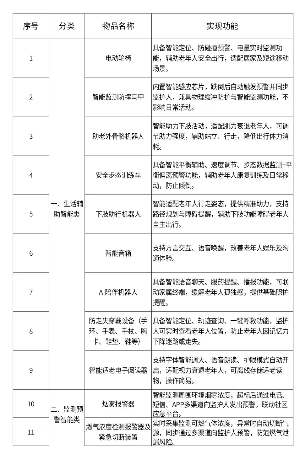 甘肃省消费品以旧换新适老化智能家居 产品补贴目录