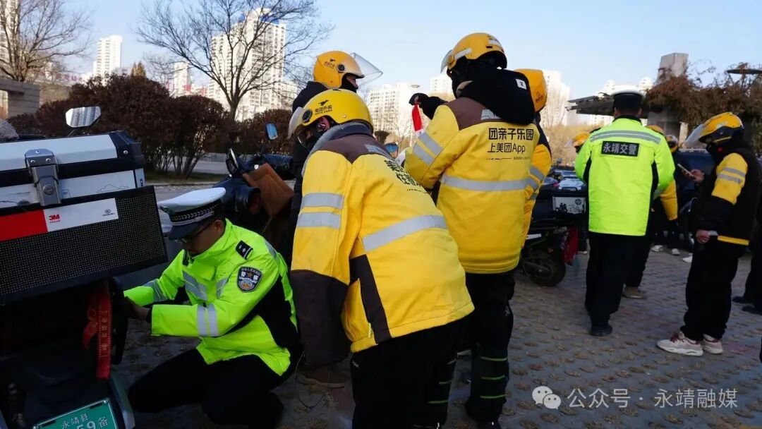 活动现场,民警通过发放宣传手册、现场答疑解惑等形式,向过往群众普及交通安全法律法规和日常出行安全知识。民警重点针对冬季道路结冰、视线不佳等出行特点,结合本地典型交通事故案例,用“身边事”警示“身边人”,还为过往外卖骑手现场粘贴反光贴,提醒其注意骑行安全。