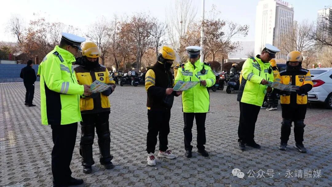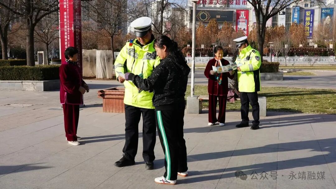 永靖县公安局交通管理大队民警 范玉鹏 今天是第14个全国交通安全宣传日,我们在水景公园开展主题安全宣传活动,向过往的群众、外卖员、快递员发放了安全手册,讲解了冬季行车安全知识和注意事项。希望通过我们的宣传,让广大交通参与者遵守交规,文明出行。