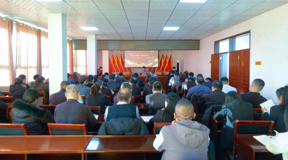 12月8日,玉门市委副书记、代市长王迎军在玉门镇向市政府办、玉门镇党员干部宣讲党的二十届四中全会精神。