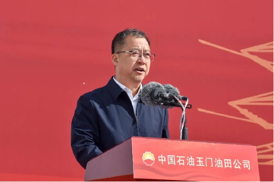 唐培宏在致辞时说,红柳泉新能源基地一期50万千瓦风电项目的开工,标志着玉门油田绿色转型发展又迈出了坚实的一步。酒泉市将进一步强化“一家人”意识,把玉门油田的事当作自己的事来办,全方位跟踪服务,大力度排忧解难,不遗余力为企业发展和项目建设提供服务保障。希望玉门油田积极调动人力、物力等一切要素,倒排工期、抢抓进度,推动项目早日建成投产。同时,充分发挥链主企业作用,持续打好新能源项目建设攻坚战,加快建设“多能互补一体化”清洁能源基地。希望玉门油田能一如既往关心支持酒泉经济社会发展,在更多领域、更广范围、更深程度推动地企双方互促共融、合作共赢,地企一道奋力书写乘风破浪、加速崛起的时代华章。