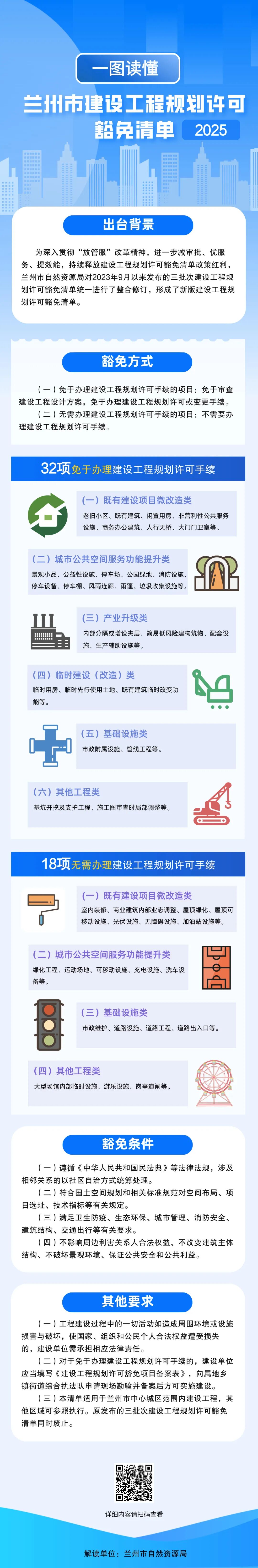 一图读懂—兰州市建设工程规划许可豁免清单(2025)