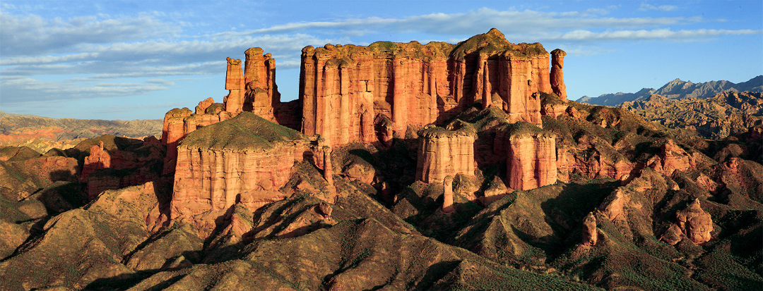 与七彩丹霞的绚丽多彩不同,冰沟丹霞以独特的造型闻名。这里是中国干旱地区最为典型的丹霞地貌,同时也是中国发育最完整,造型最为奇特的丹霞地貌之一,这里的丹霞地貌犹如天然的城堡、宫殿和雕塑,形态各异,栩栩如生。