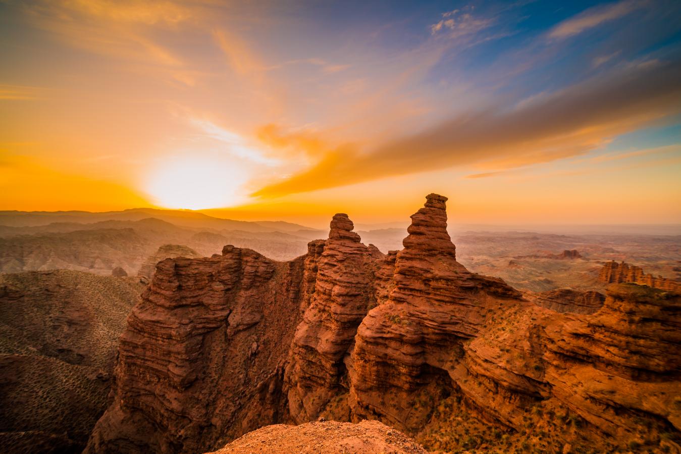 告别草原,踏入外星谷神秘之地。这里仿佛是外星文明遗留在地球上的神秘痕迹,形态各异的岩石、色彩斑斓的山体,构成了令人惊叹的奇幻景观。