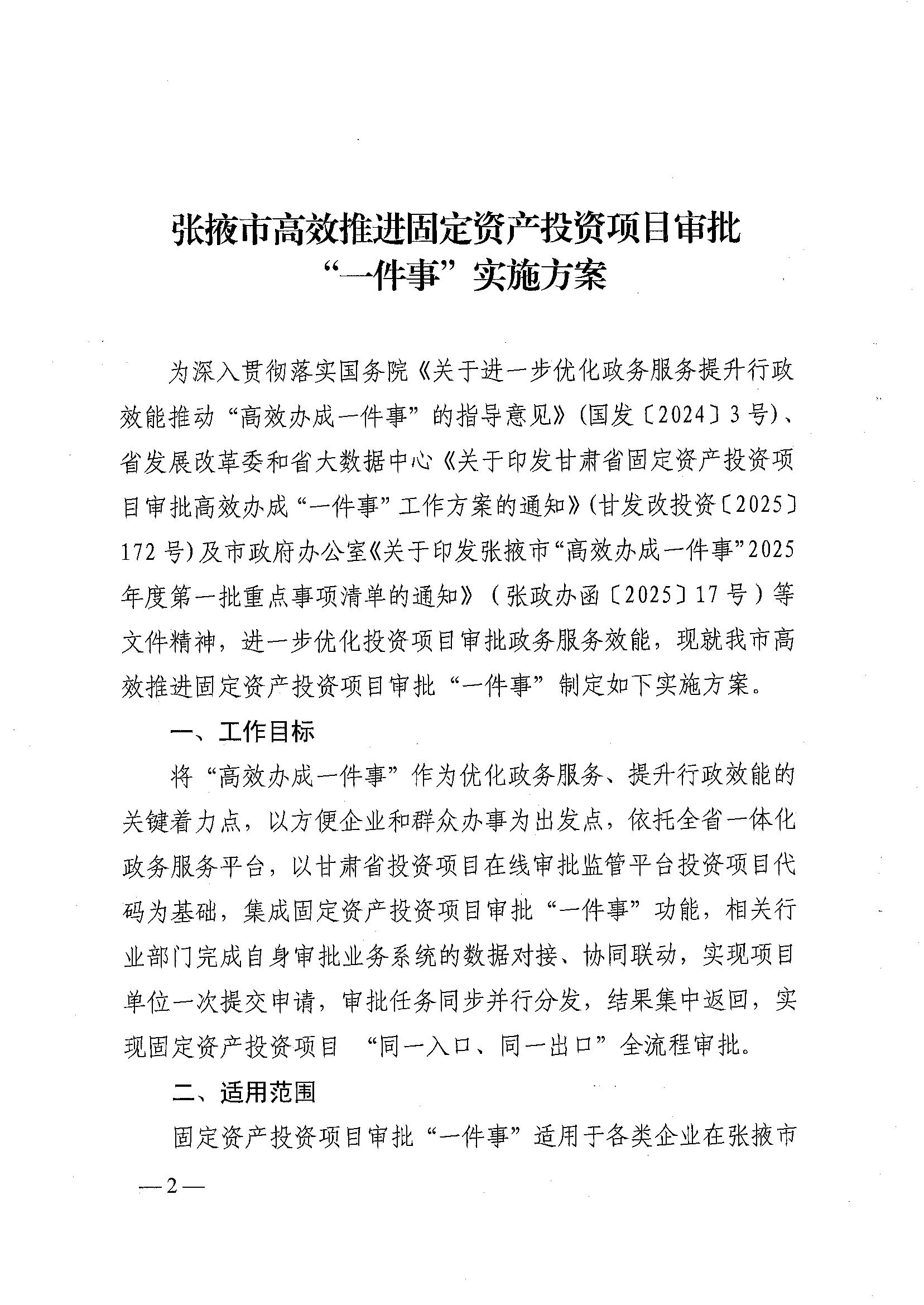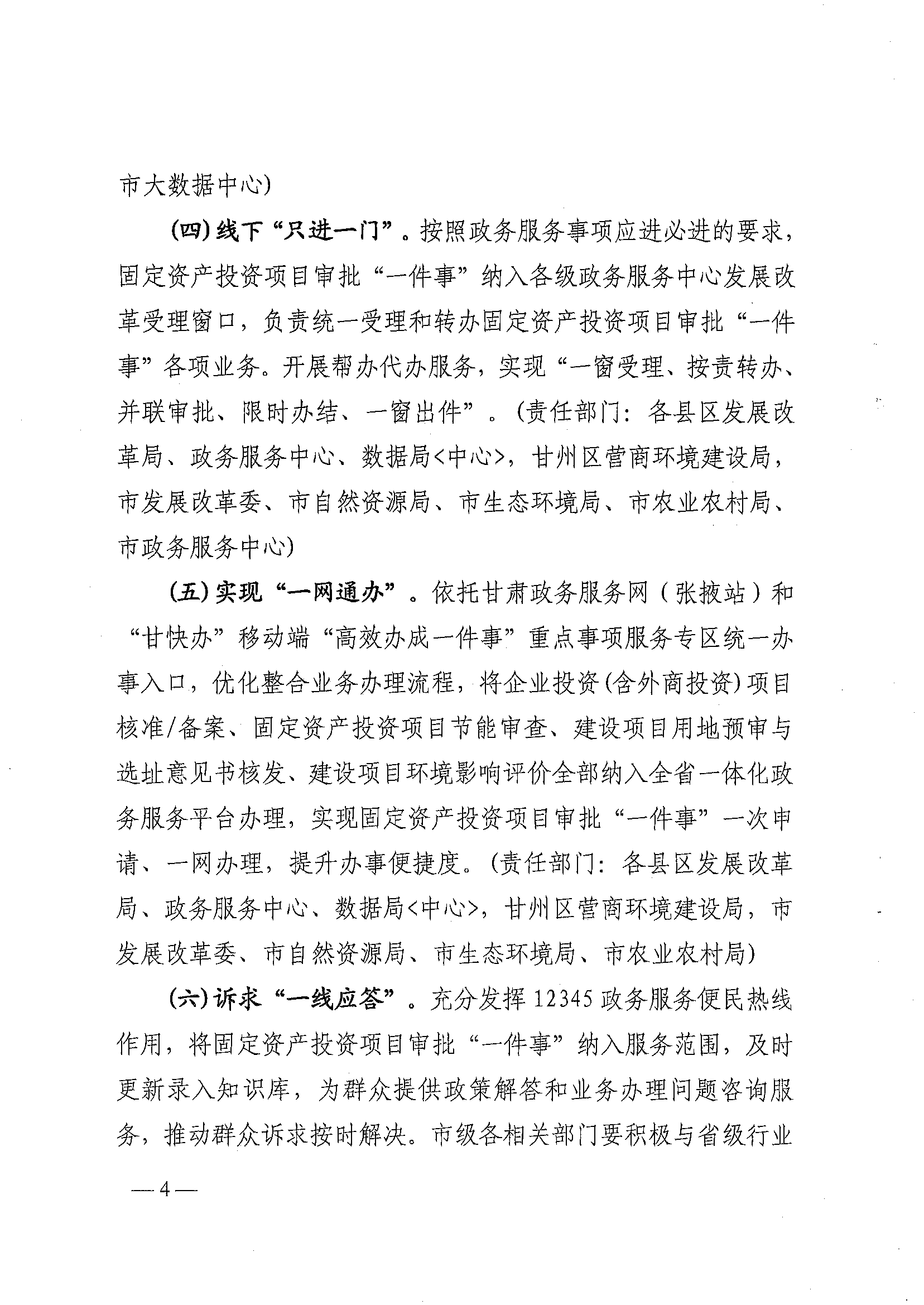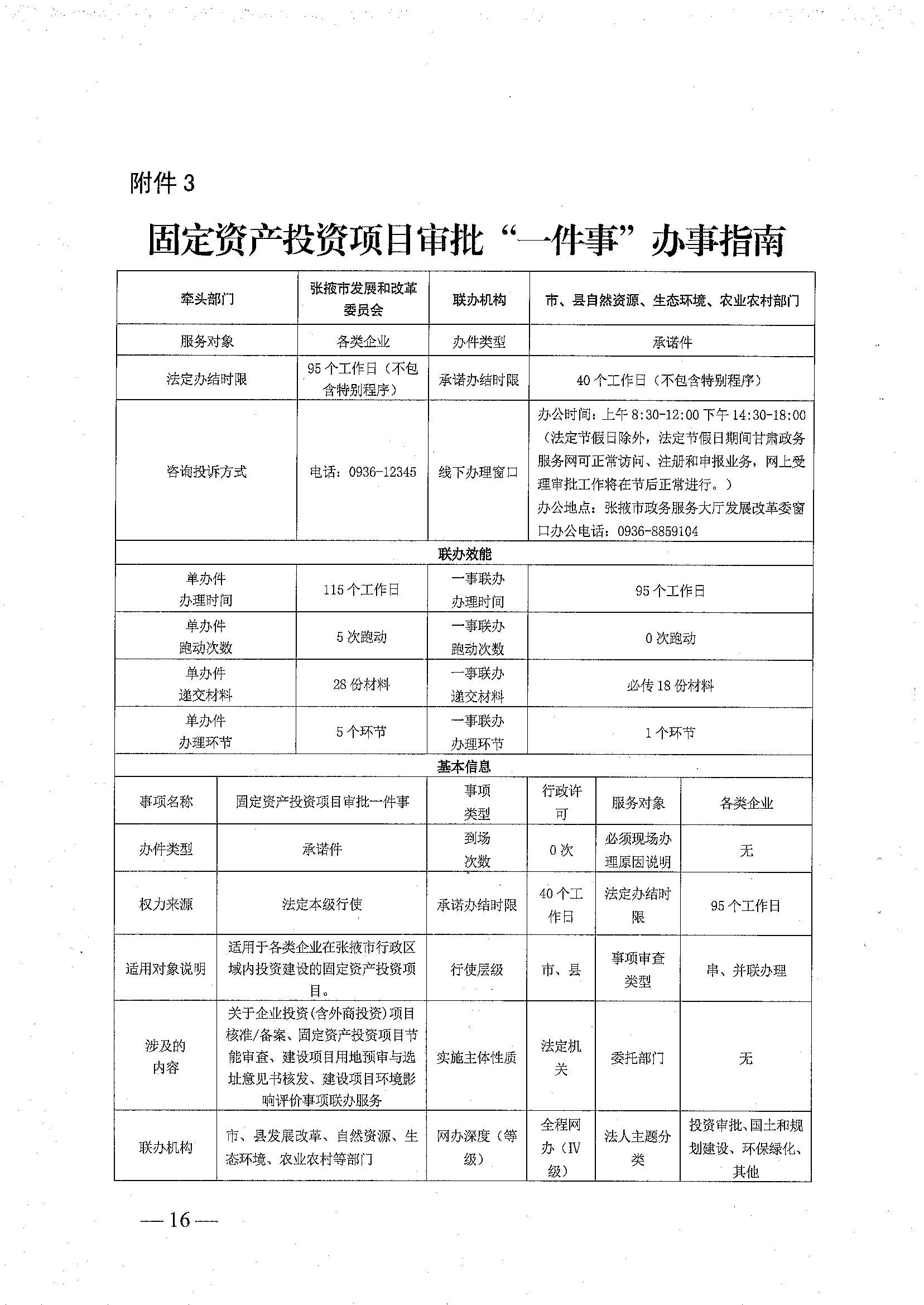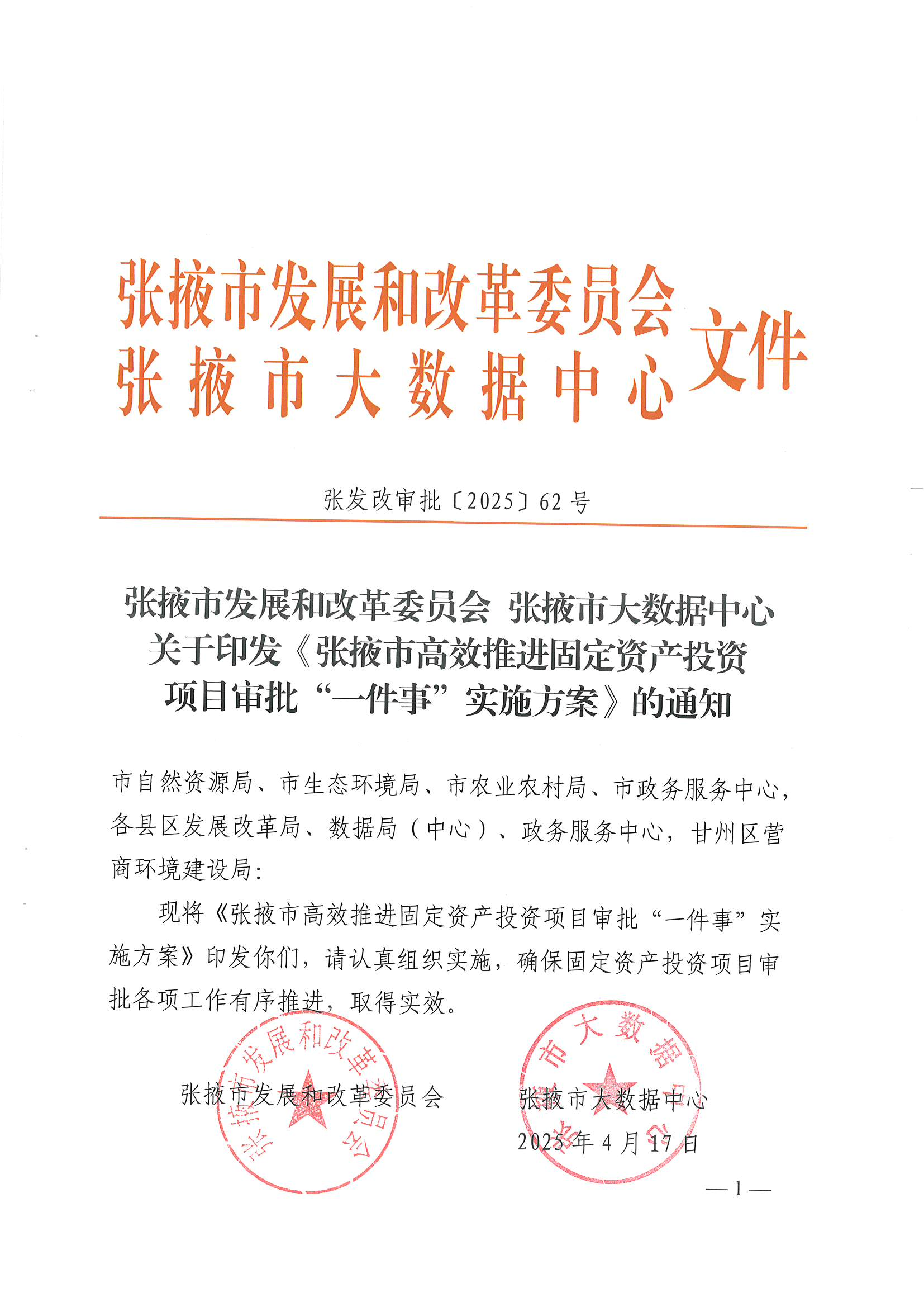 张掖市发展和改革委员会 张掖市大数据中心关于印发《张掖市高效推进固定资产投资项目审批“一件事”实施方案》的通知