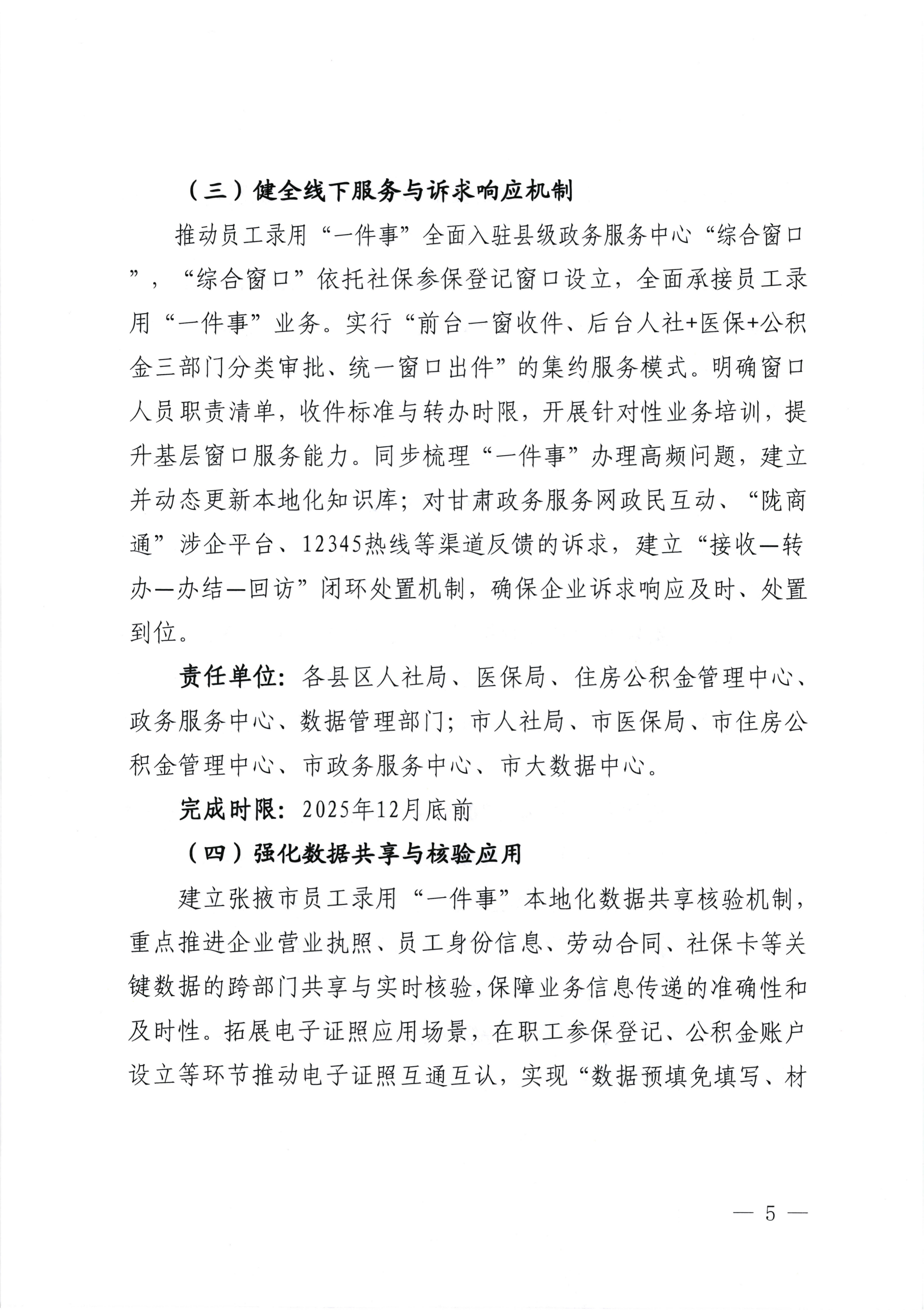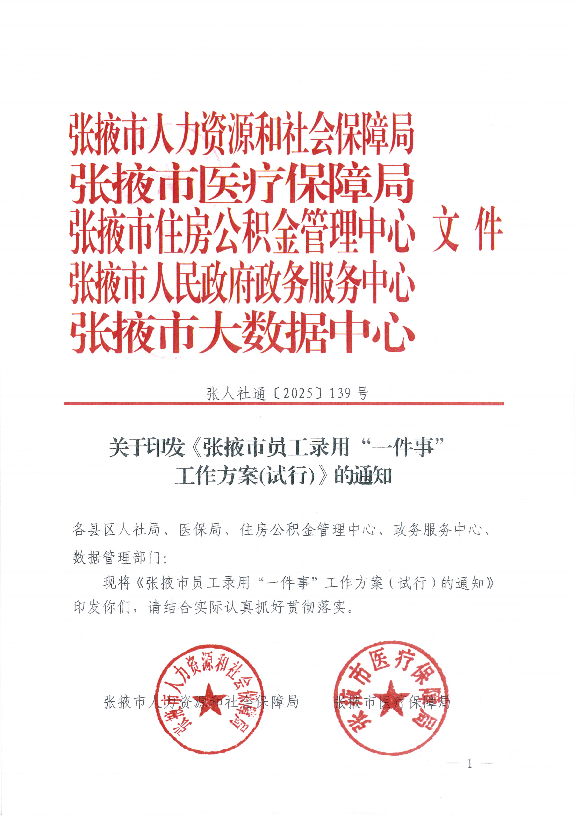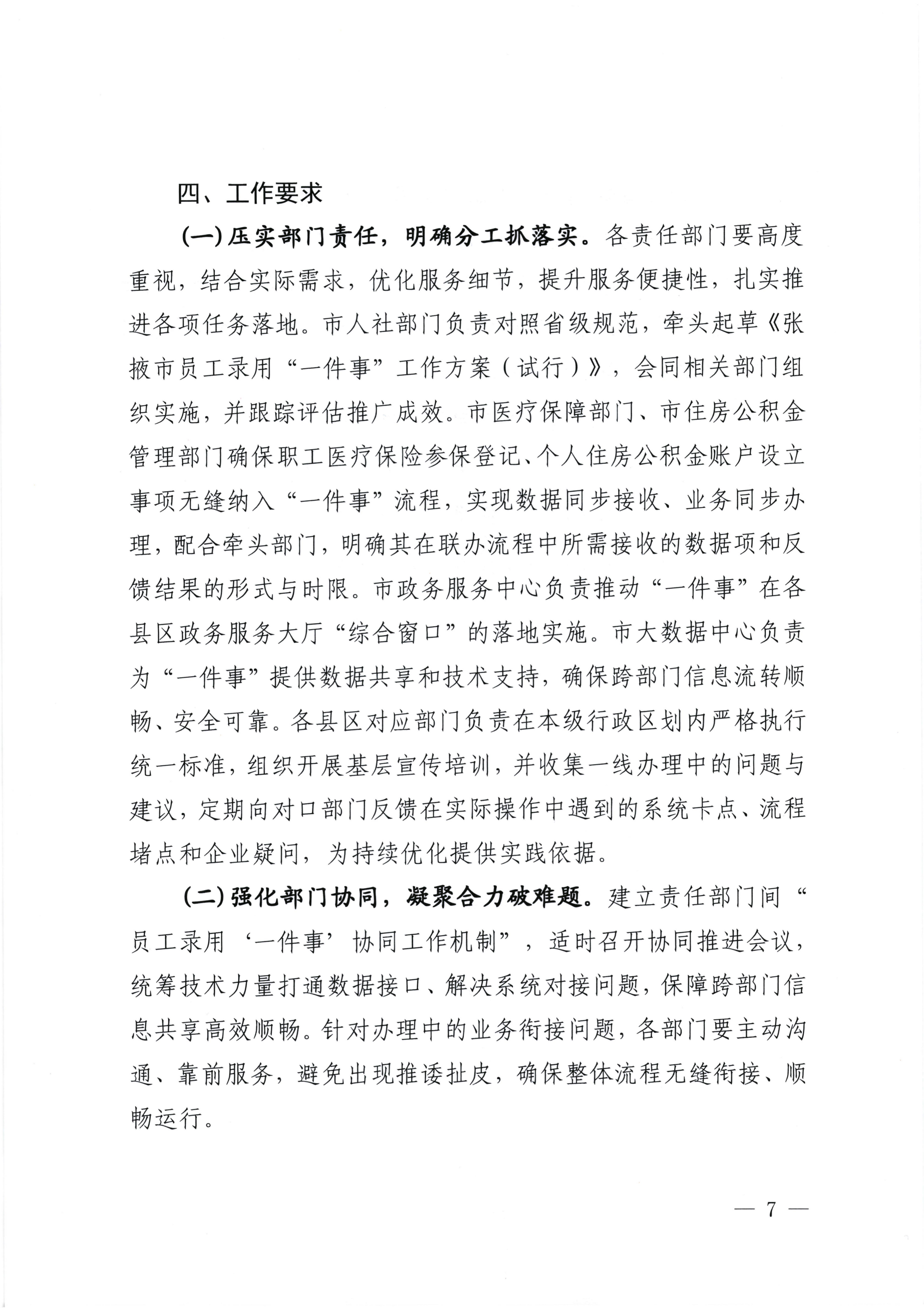 关于印发 《张掖市员工录用 一件事工作方案(试行)》 的通知