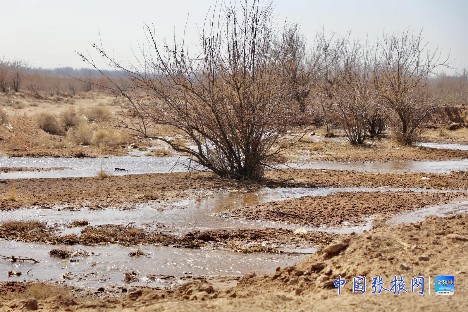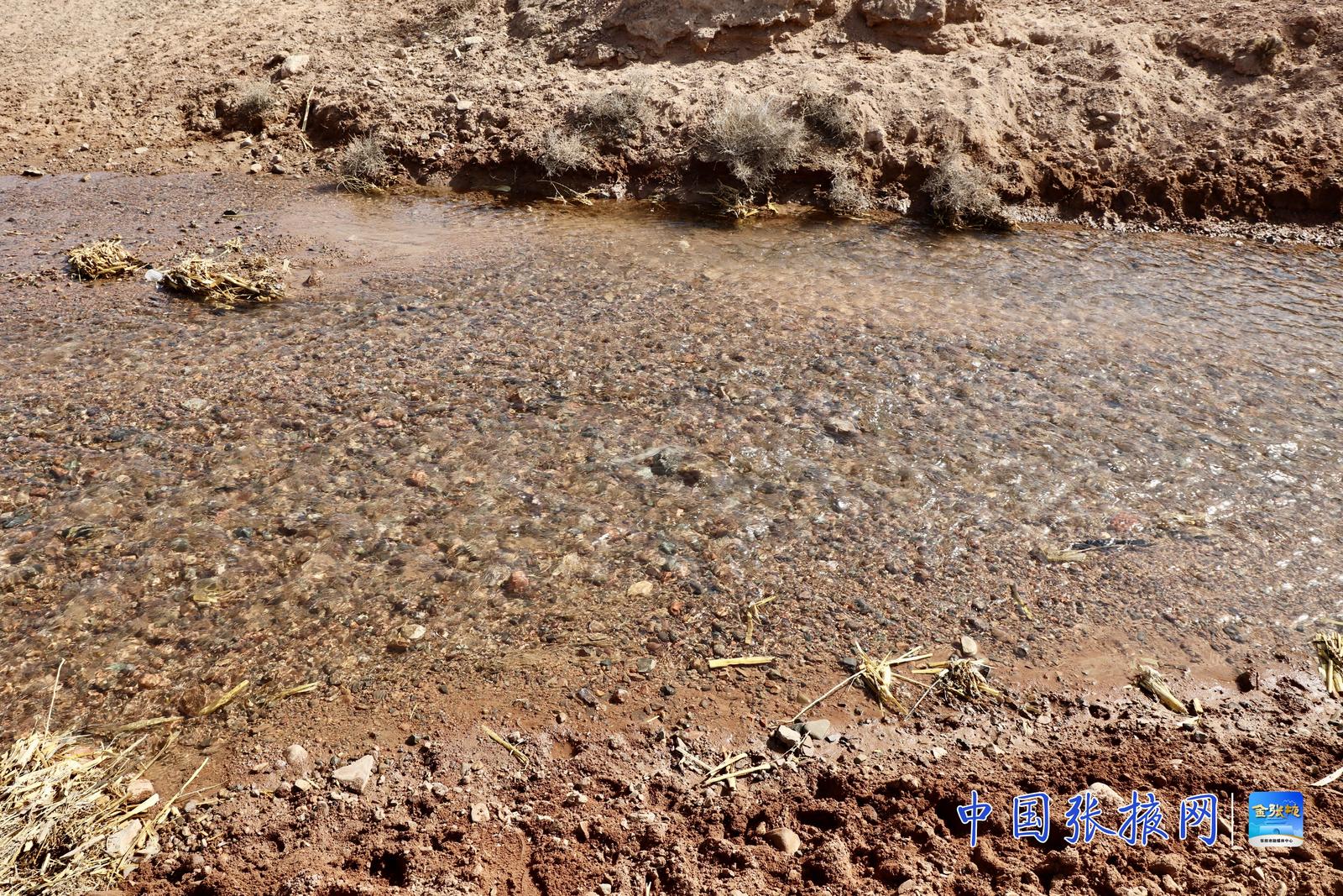 3月26日上午10时许,汩汩清水从张掖经开区循环园污水处理厂新建的中水管网涌出,向红沙窝林场深处蜿蜒而去。晨光中,流水中的石块清晰可见,风拂水面,泛起粼粼波光,宛如明镜。