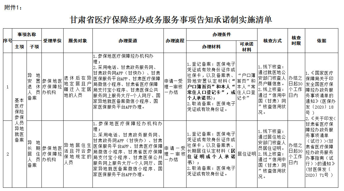 附件:1.甘肃省医疗保障经办政务服务事项告知承诺制实施清单.xlsx