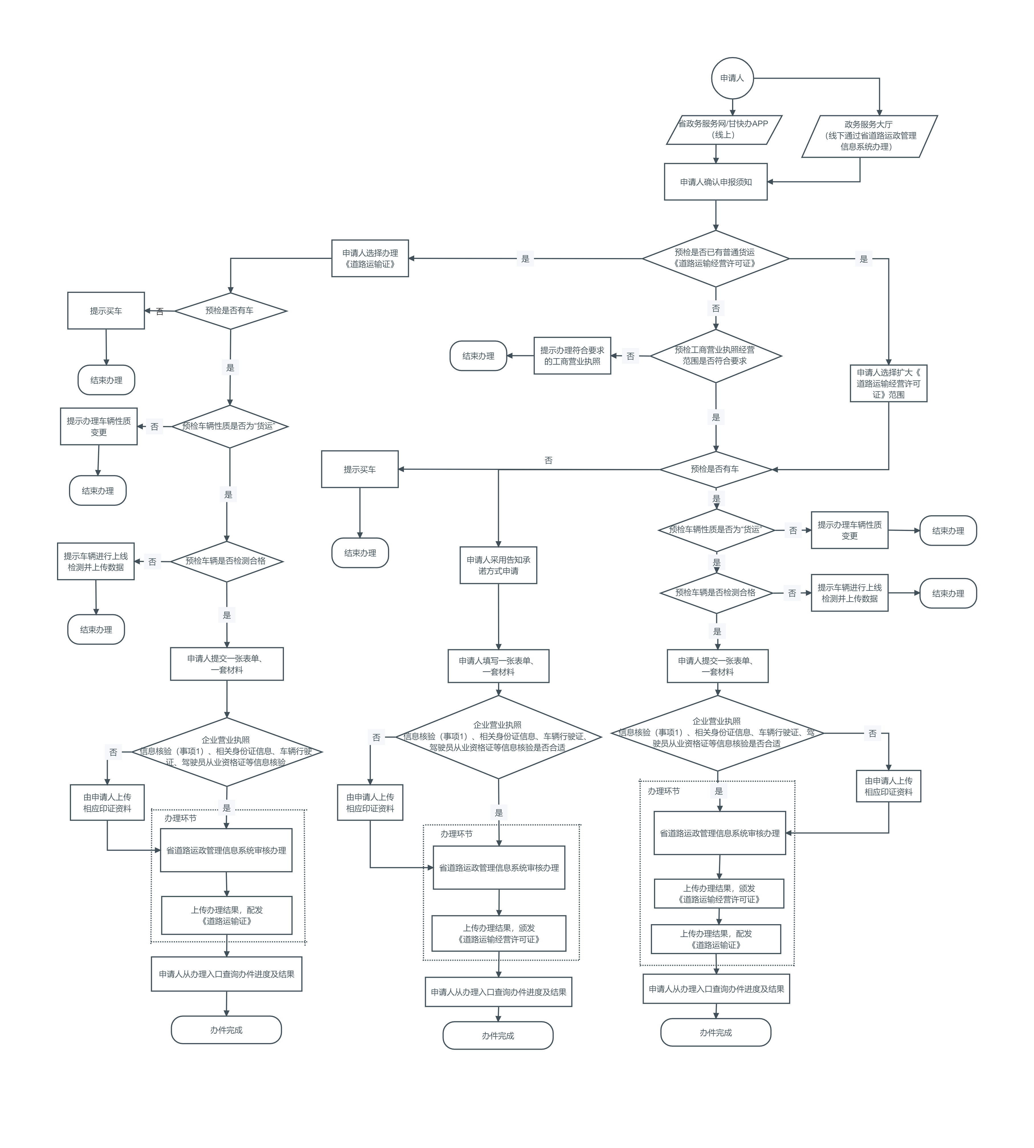 市场主体在申请开办普通货物运输企业时,涉及的企业营业执照信息核验、道路普通货运经营许可(危险货物道路运输经营)、使用总质量4500千克及以下普通货运车辆从事普通货运经营的除外》、普通货物运输车辆《道路运输证》配发3个事项,实现线下“只进一门”、线上“一网通办”、线上线下同标准办理。